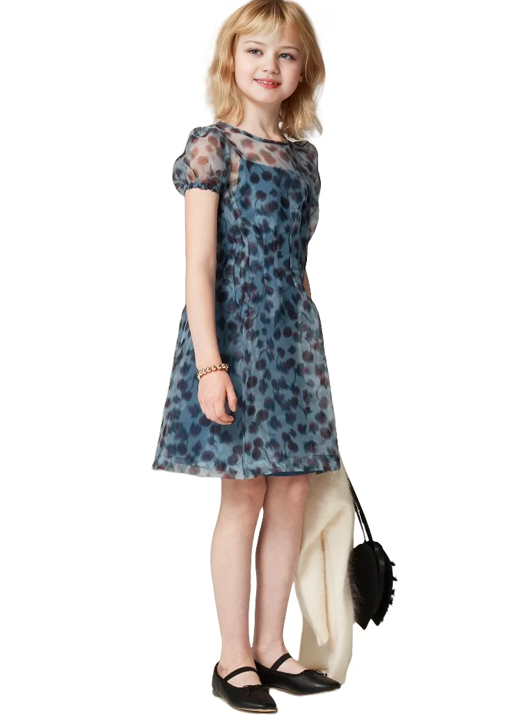 New Fashion Summer Girls Printed Dress Casual Style with Floral Pattern O-Neck Polyester Knee-Length for Parties for Children