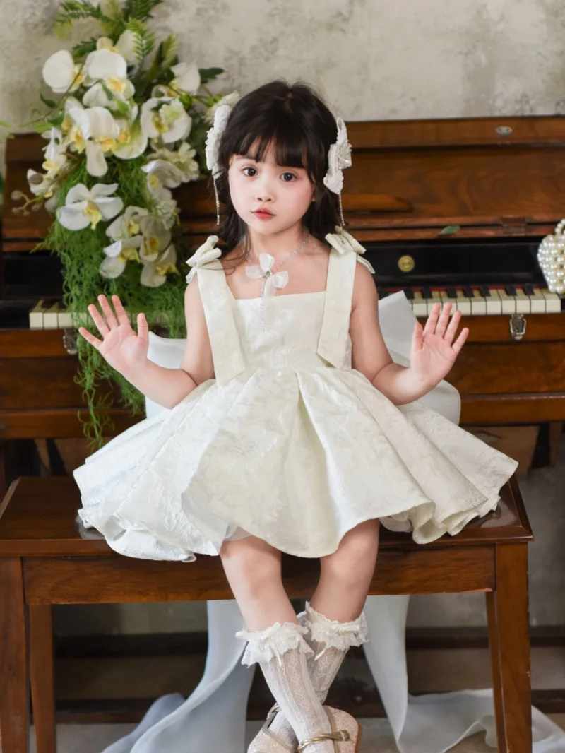 High Quality Jacquard Fabric Girls Dress Princess Style 1-14 Years Old Bows Girls Dresses Wholesale Fluffy Dresses for Girl