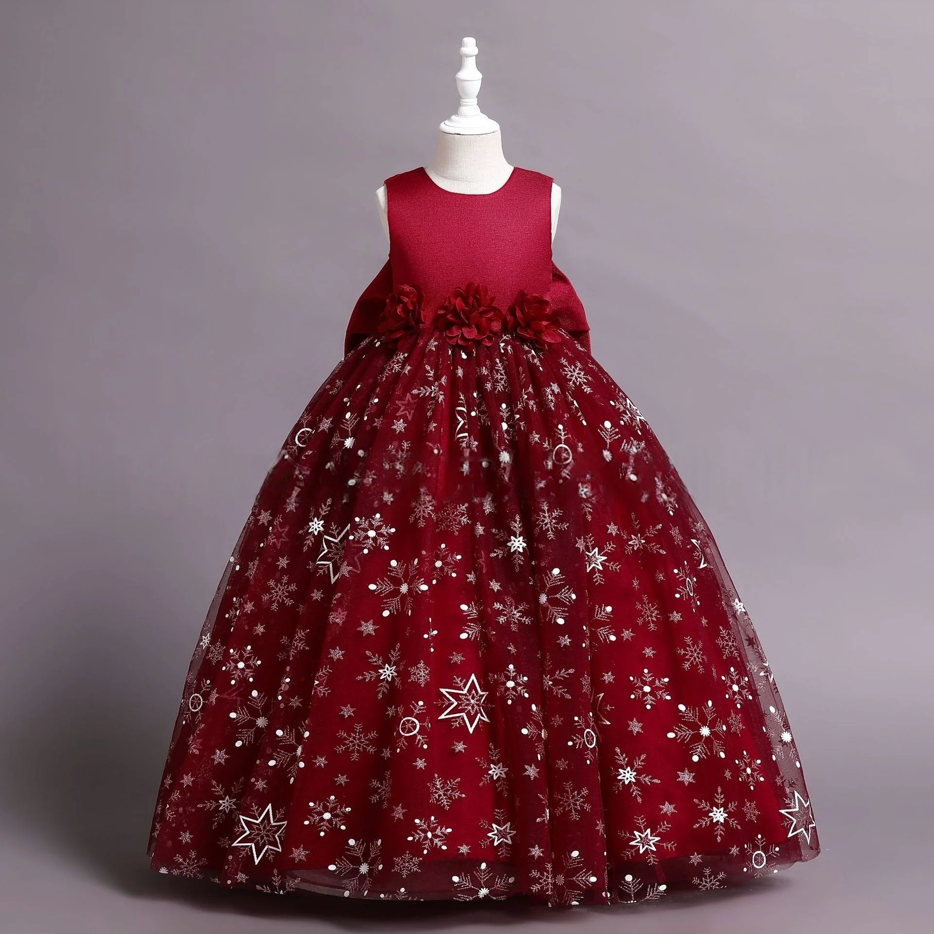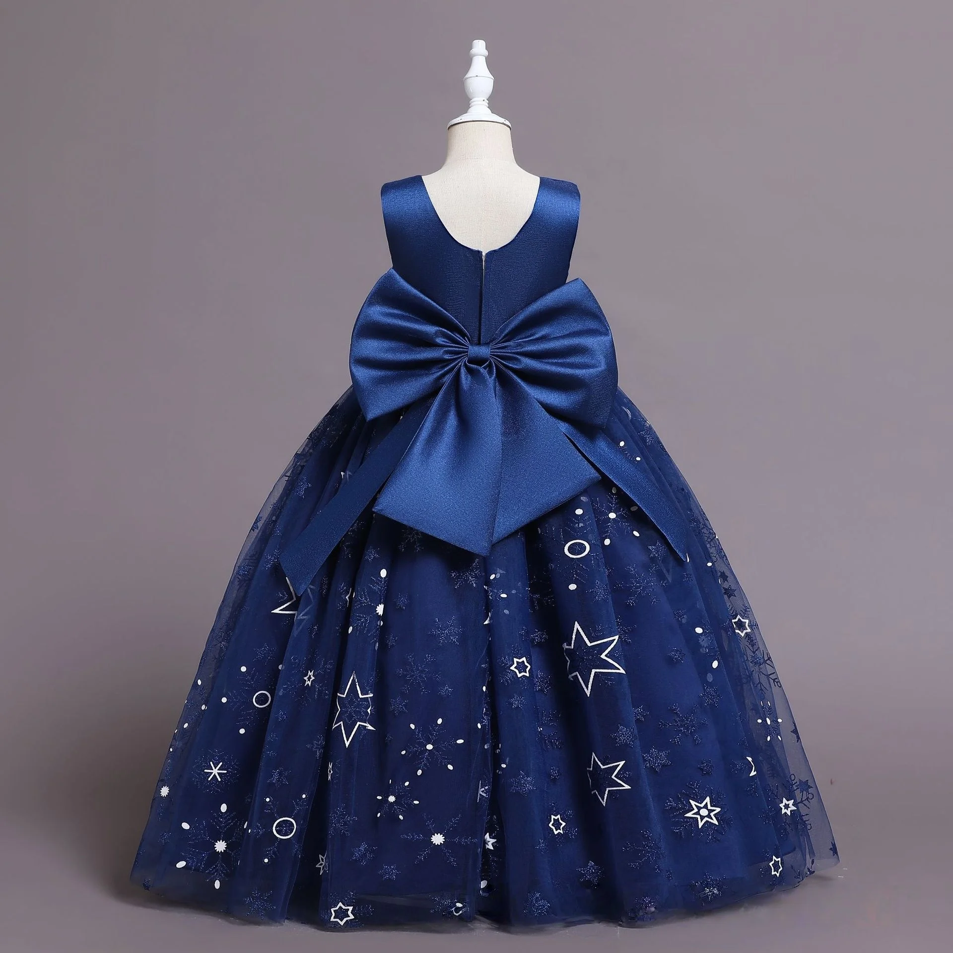 Children's Formal Dress Evening Printed Tulle Dresses Princess Sweet Christmas Evening Girls Party Kids Dresses Girls Clothing
