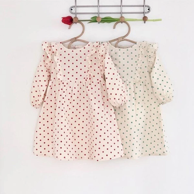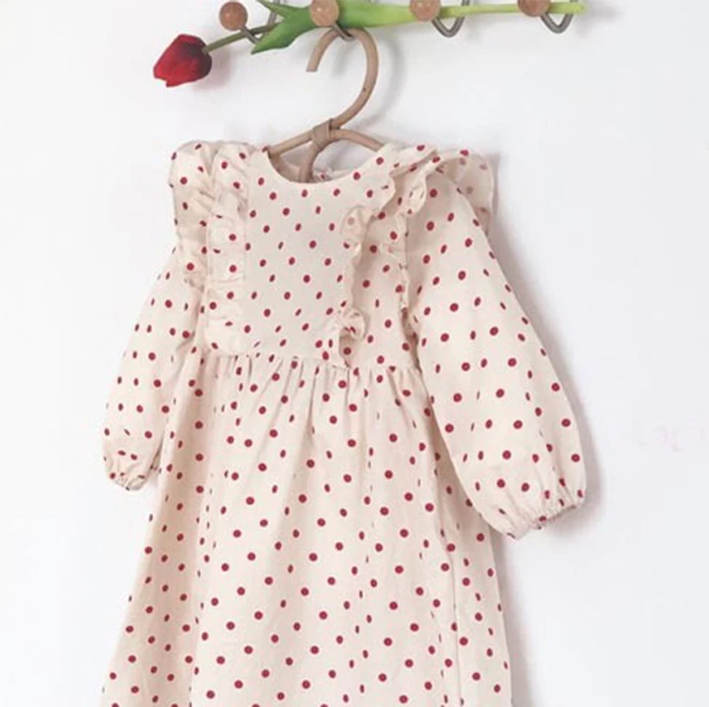 2026 NEW Children Clothing Wholesale Long Sleeve Polka Dot Print Dress Autumn Dress Clothes Kids Dresses for Girls