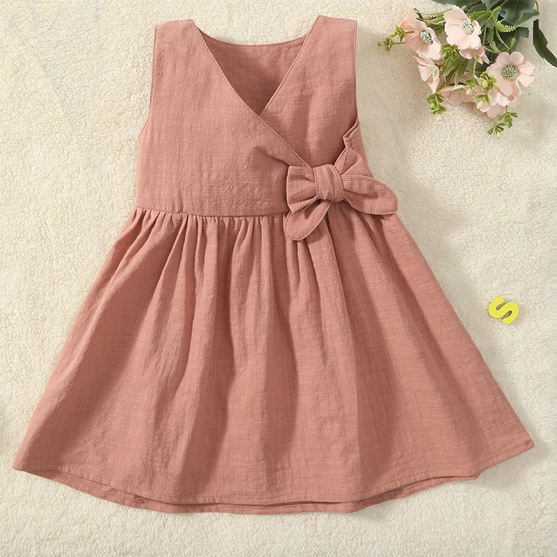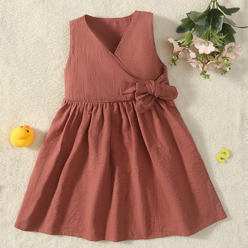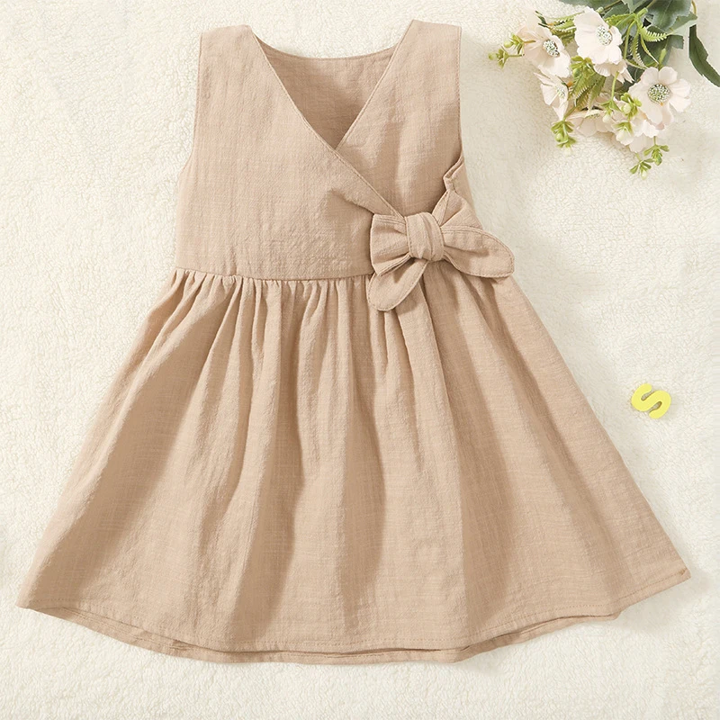 Modest 2026 Kids Summer Casual Floral Cotton Knee-Length Sleeveless Eco-friendly Ball Gown Baby Girls Dress Cute