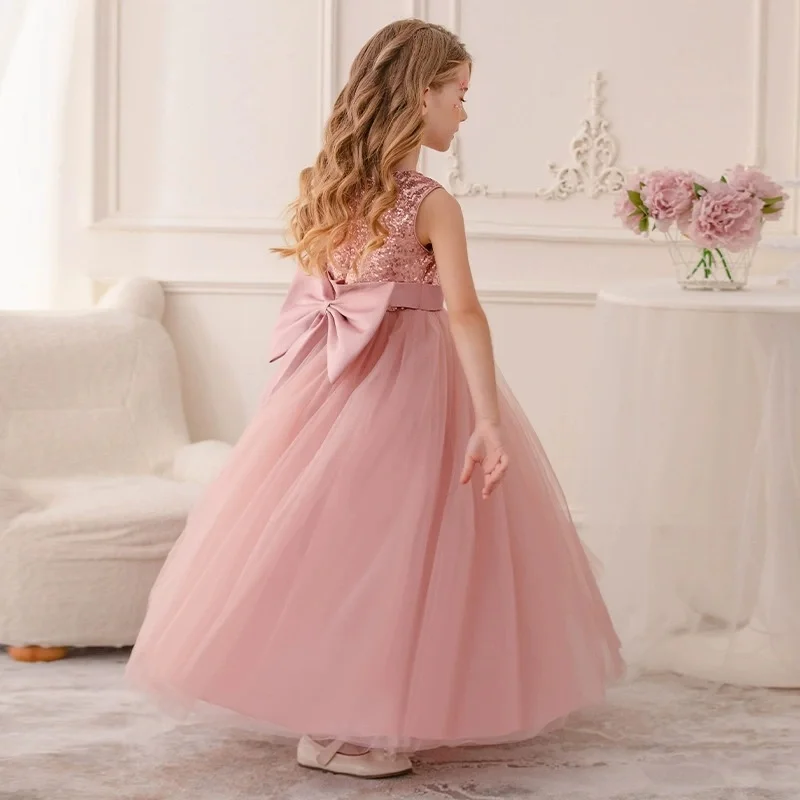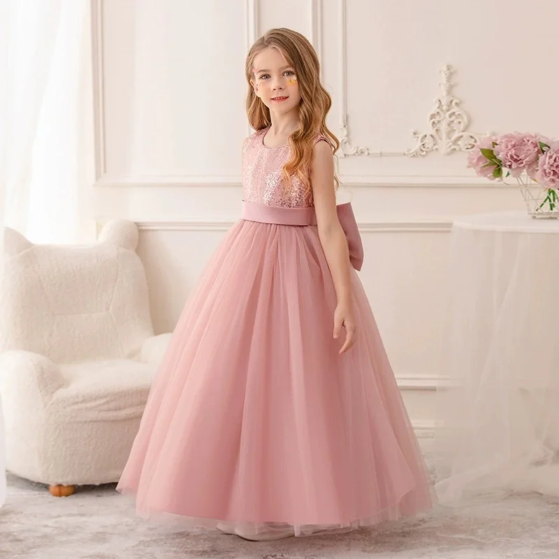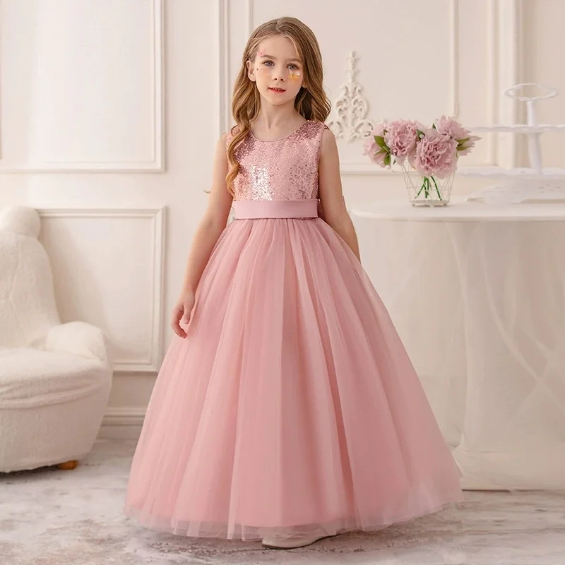 Girls' Princess Wedding Host Evening Catwalk Costume for Piano Performance Children's Sleeveless Sequined Princess Dress
