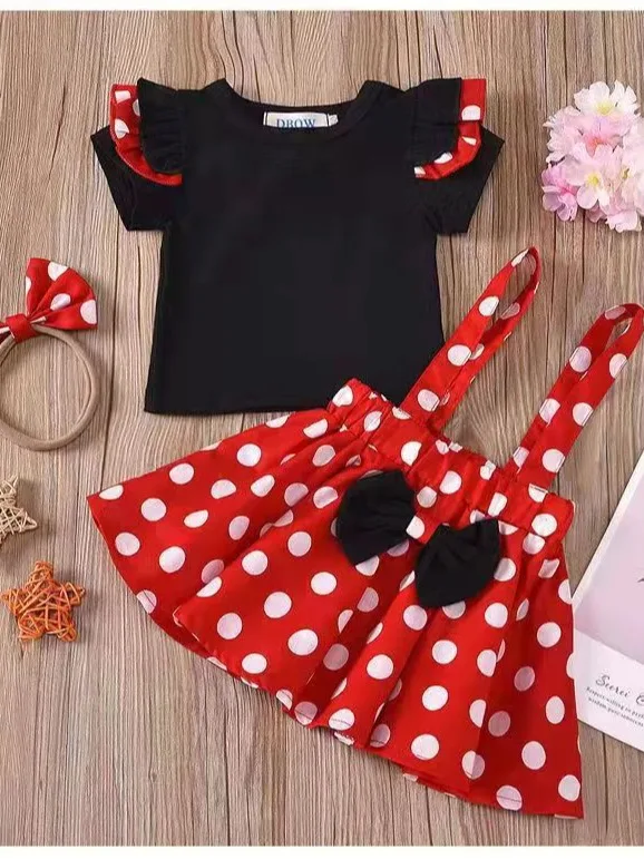 Wholesale Hot Sale Summer Casual Kids Dresses European Fashion Bow Dot Princess Short Sleeve Skirt for Girls' Birthday Parties