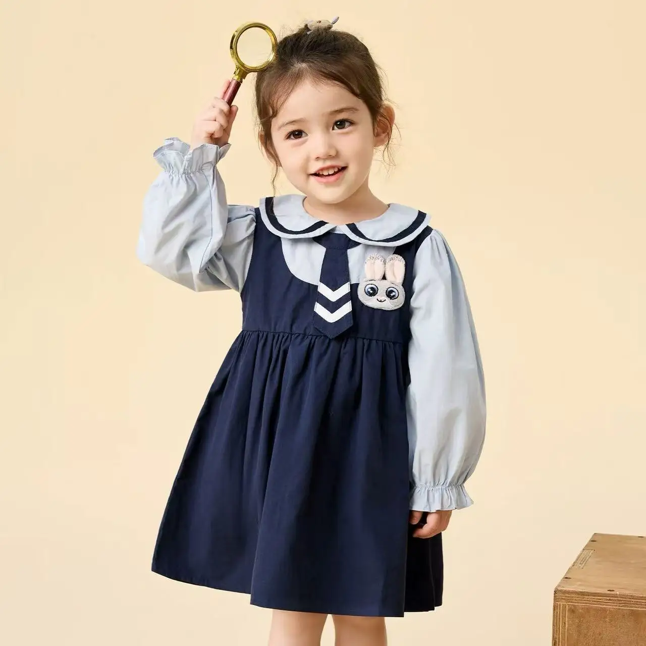 2026 New Style Fashion Girl Clothes Casual Sweet Outdoor Baby Girls Dresses Preppy Jumper Dress Naval Officer's Dress Uniform