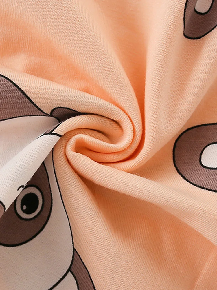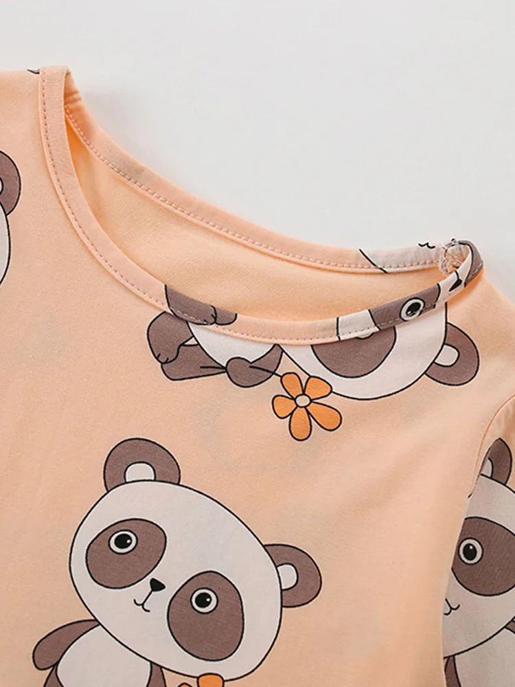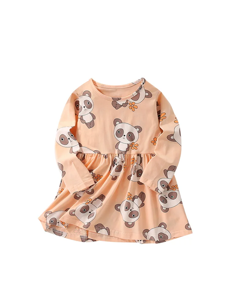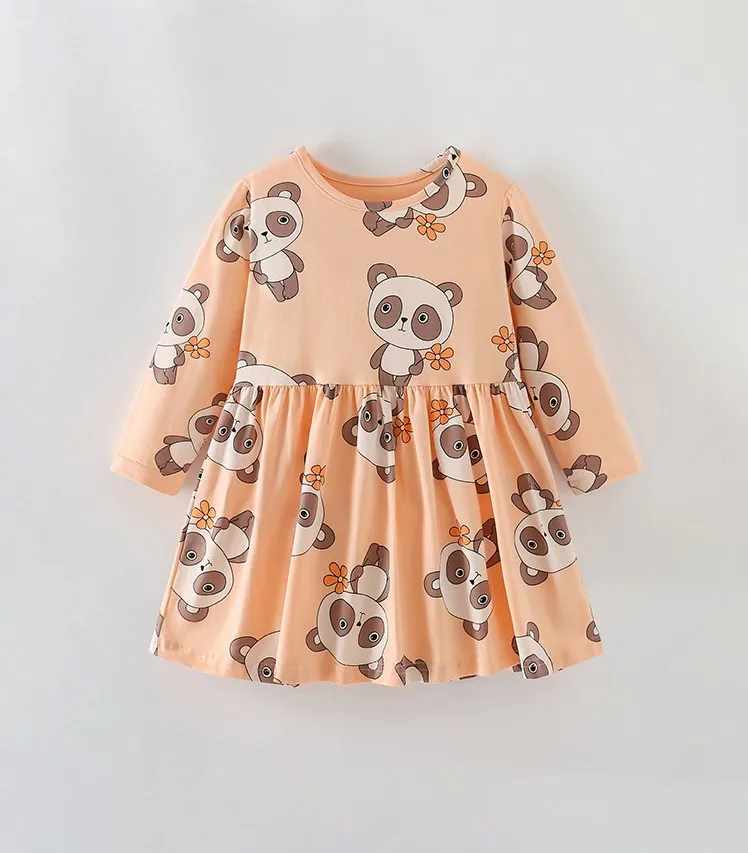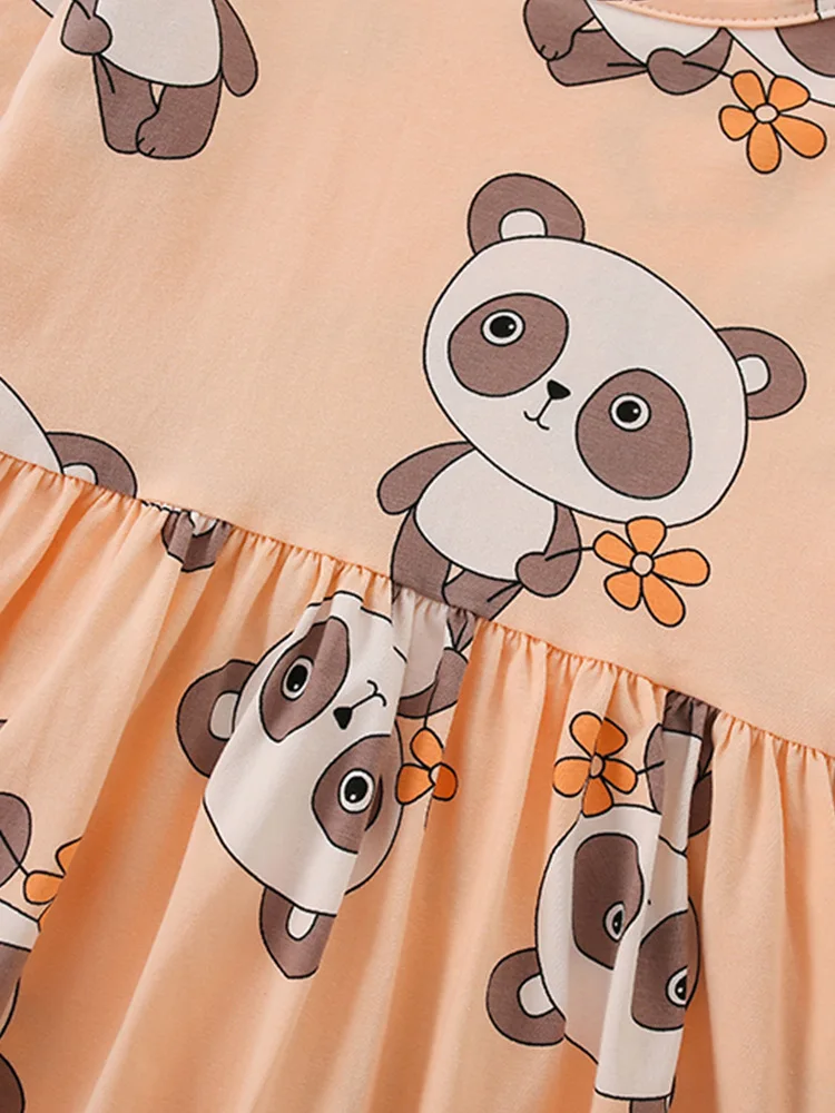 Children's Autumn Panda Print Organic Cotton Long Sleeve Baby Girl Night Dress Orange Handmade