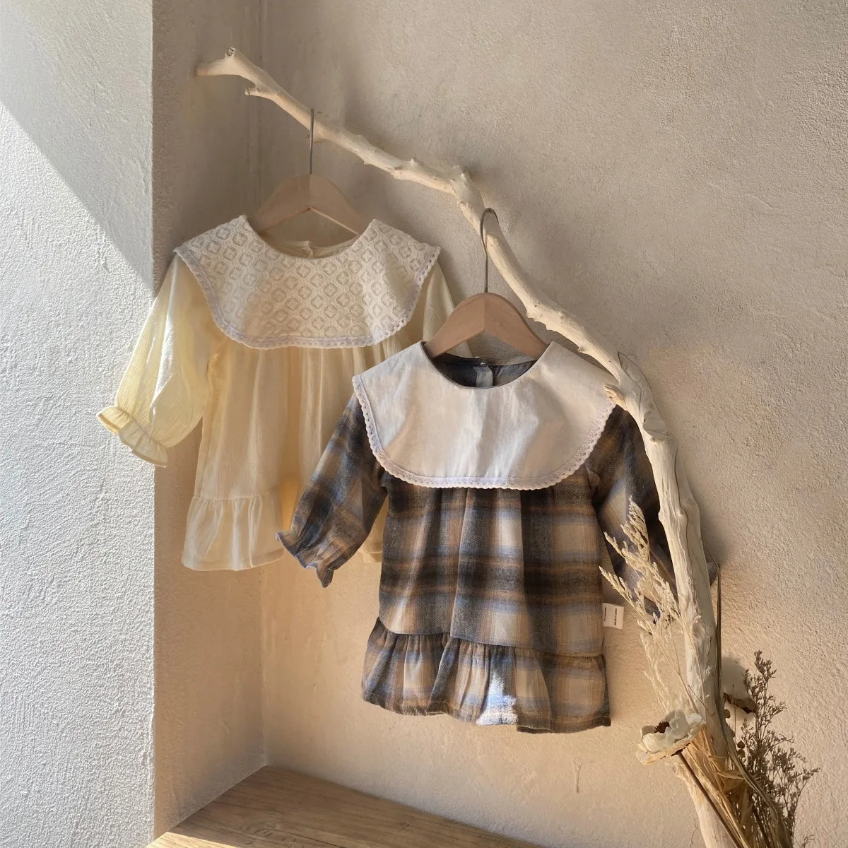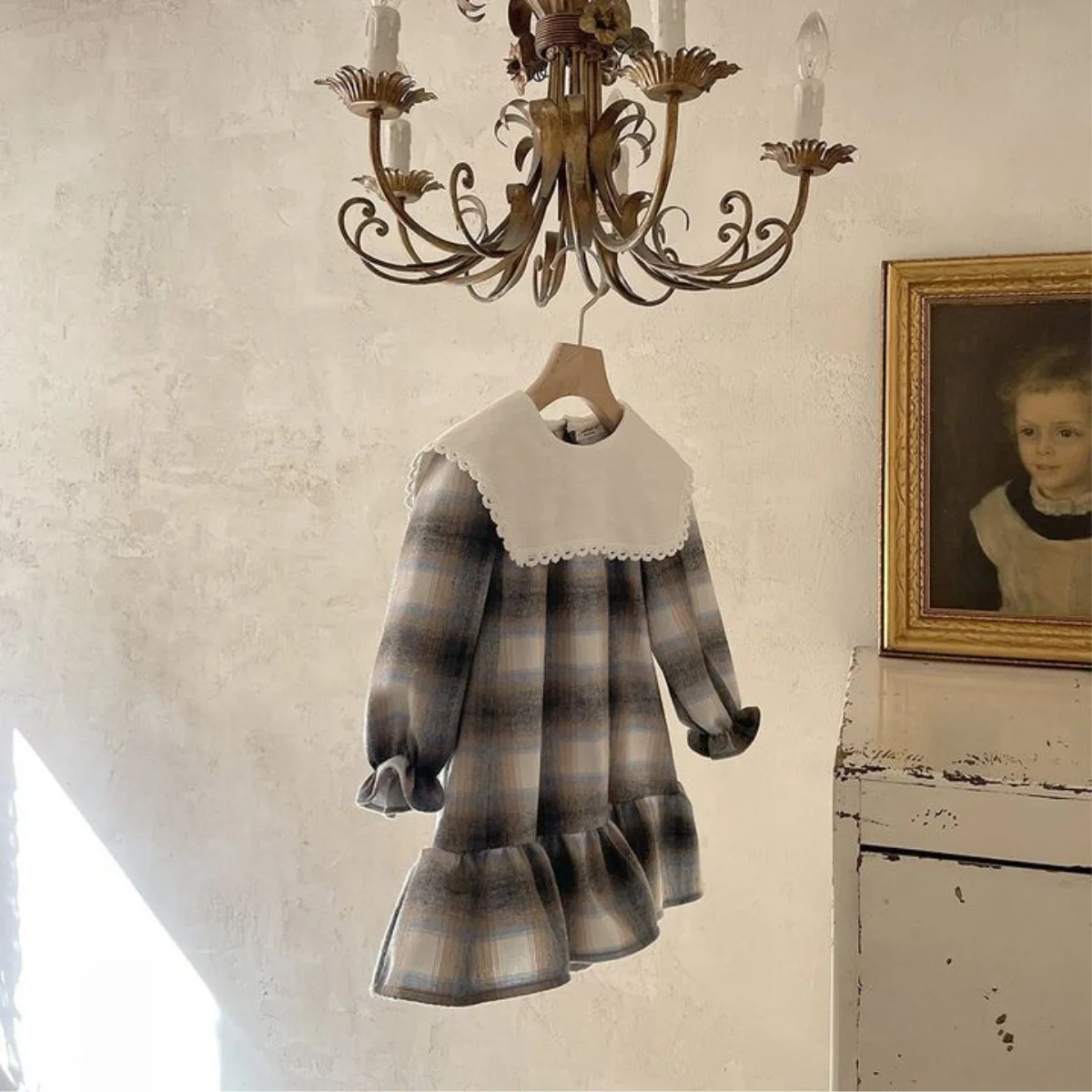Wholesale Girls' Autumn Formal Cotton Lace Floral Sleeve Midi Dress for Children