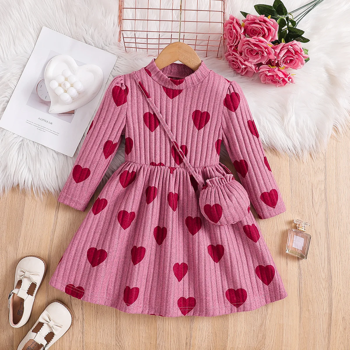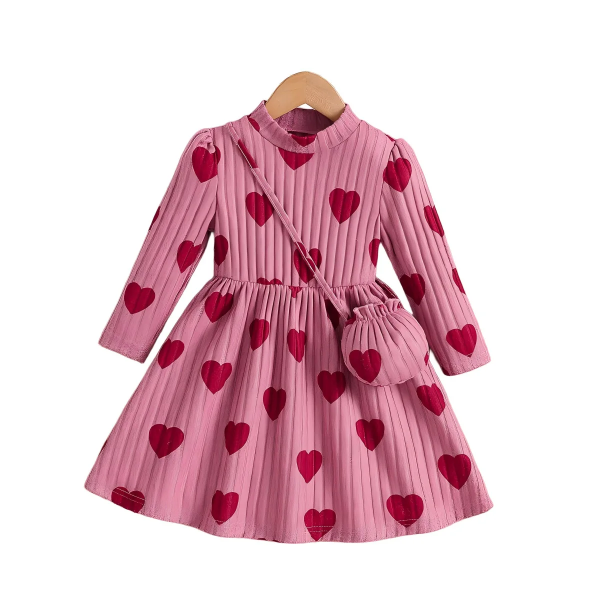 NEW Girls' Children Eco-friendly Cotton High Neck Heart Knitted A-Line Swing Shoulder Bag Dress Summer Style Back School Casual