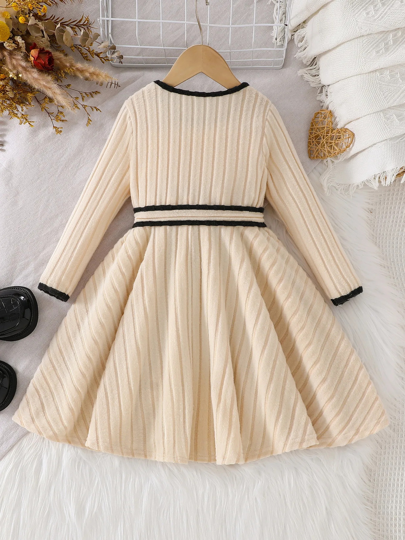 NEW Summer Girls' Fashion Long Sleeve Pullover Dress Lace Casual Print Cotton Knit Eco-Friendly Belt ODM Supply Children