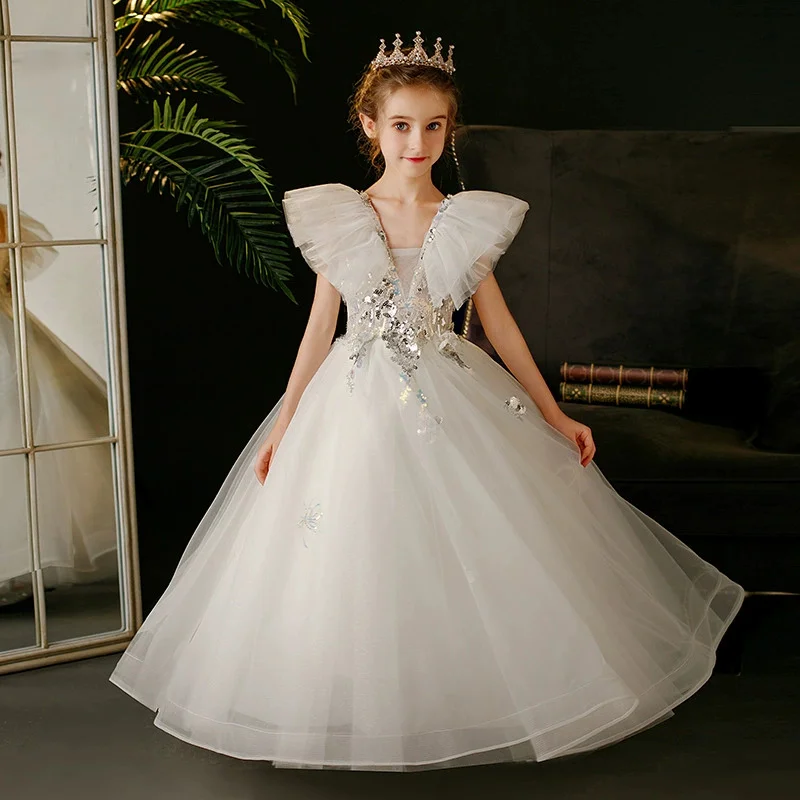 Wholesale New Children's Elegant Dress Puffy Tulle Princess Dress Piano Performance Girl Evening Dress