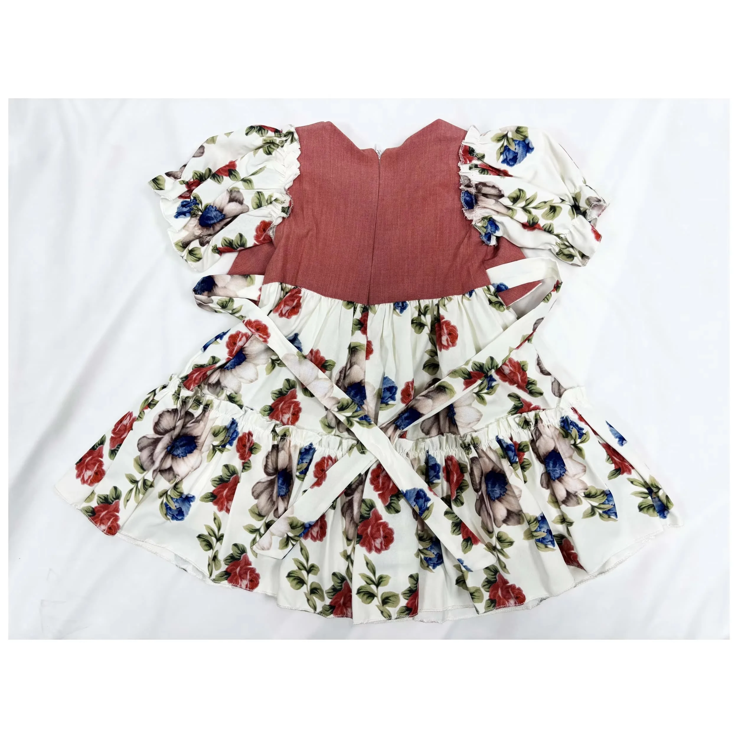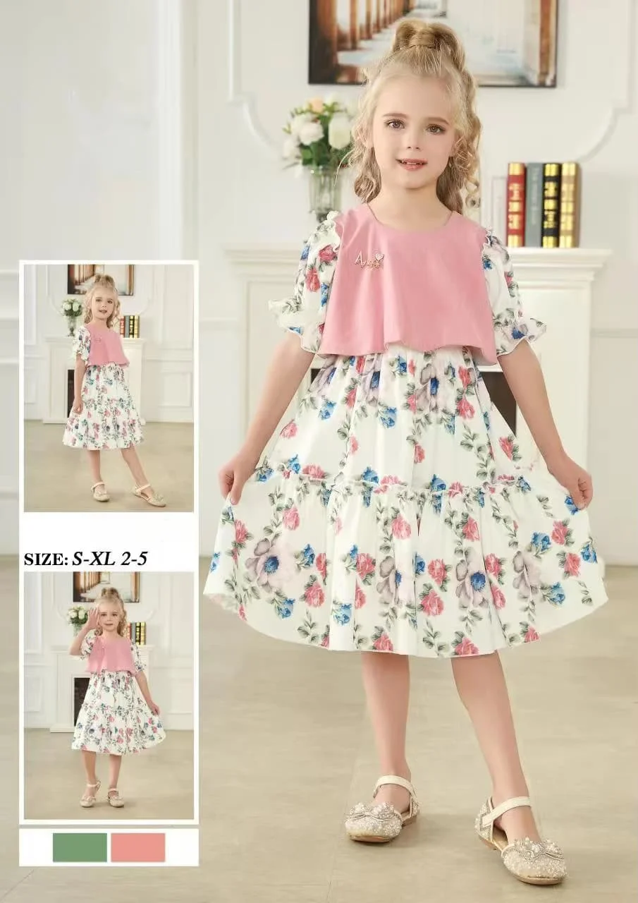 O-Neck Summer Casual Dress for Girls Comfort Floral Design in Rural Style Cotton Knee-Length Daily Wear with Pattern Decoration
