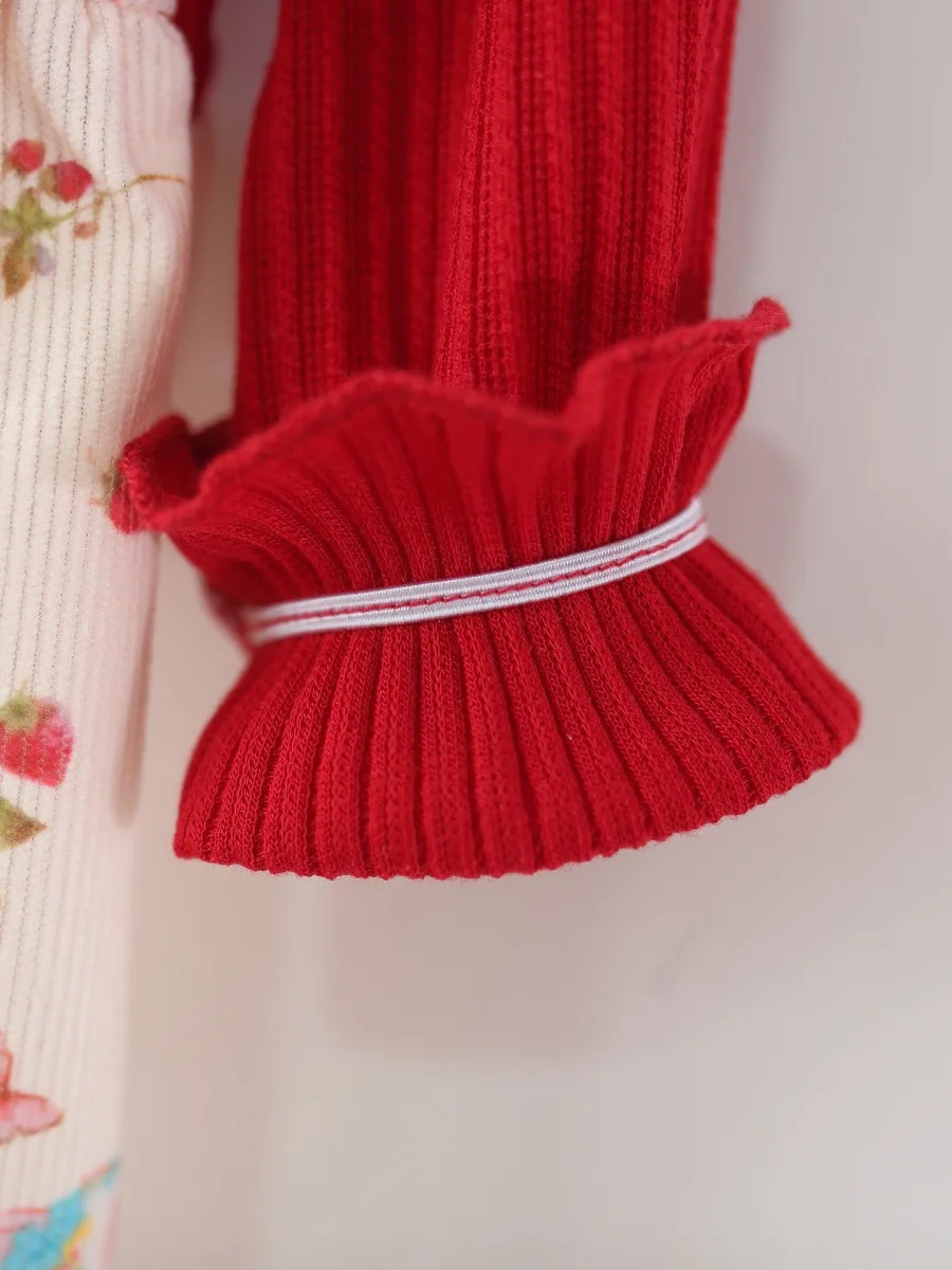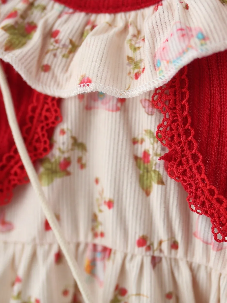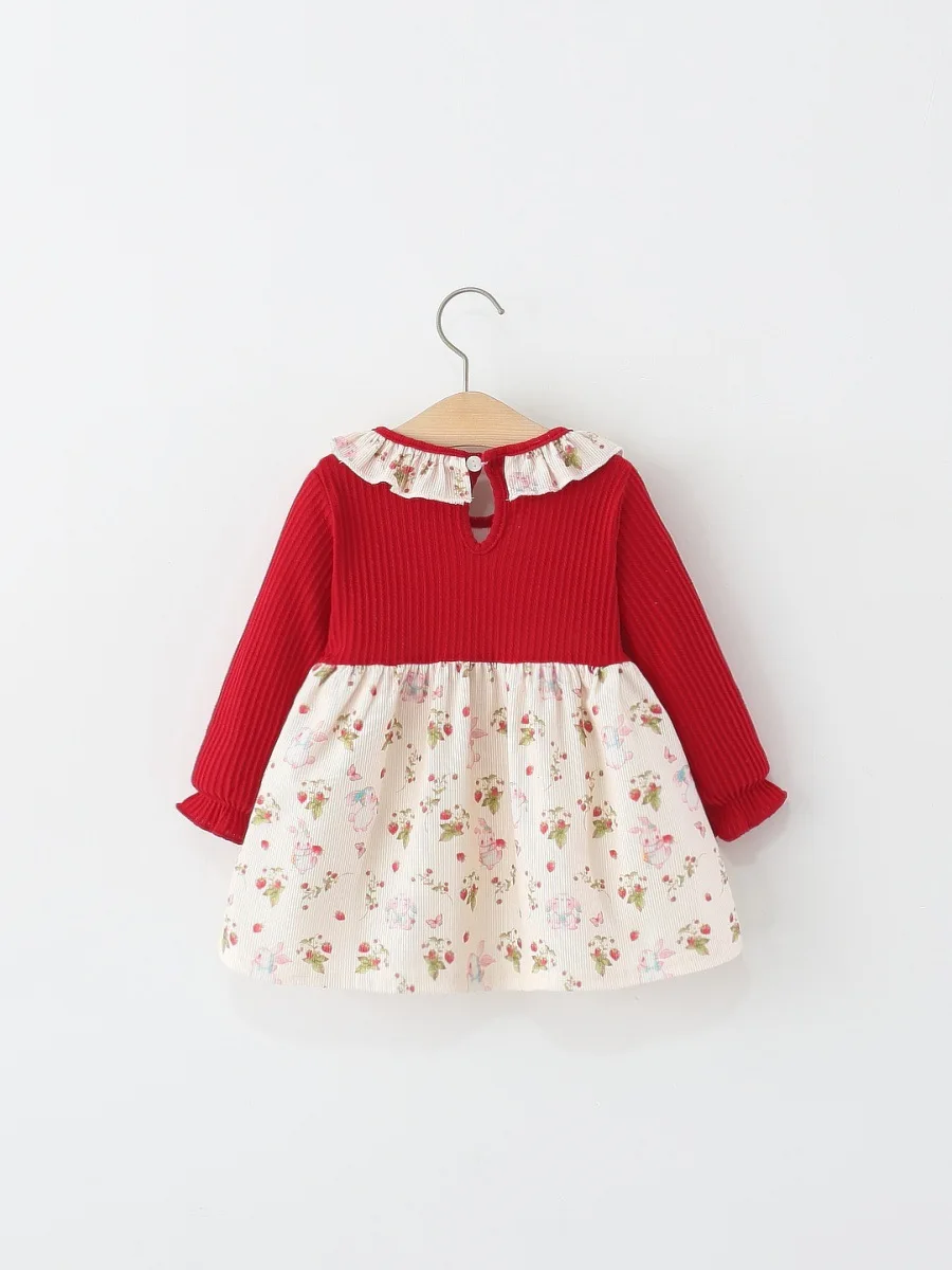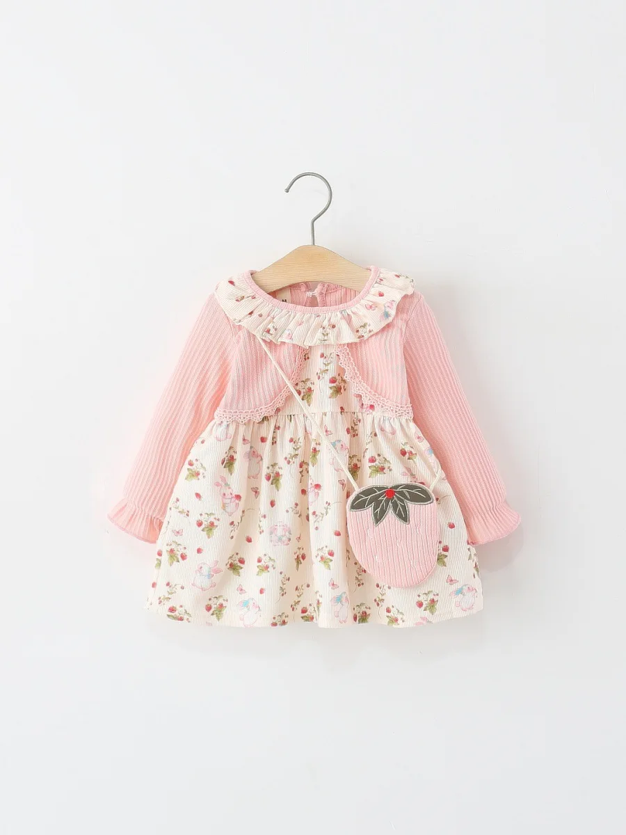 2026 New Children's Girls' Sweet Eco-friendly A-line Knee-length Long Sleeve Floral Printed Two-piece Princess Dress Autumn
