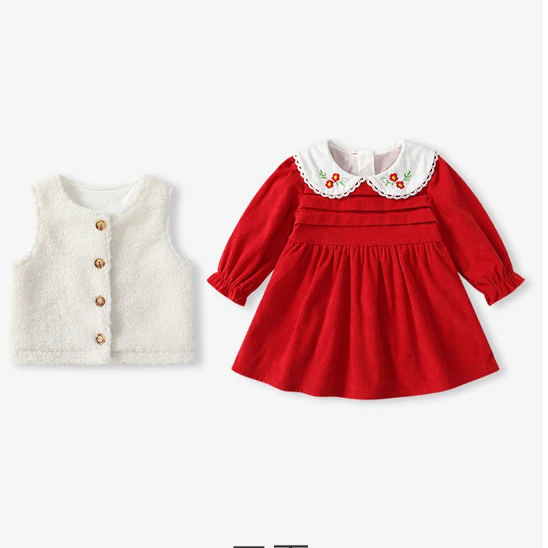 Girls' Dress Sets (two-piece) New Stylish Princess Dress for Girls Autumn Winter Seasons Baby Girl's First Birthday Dress