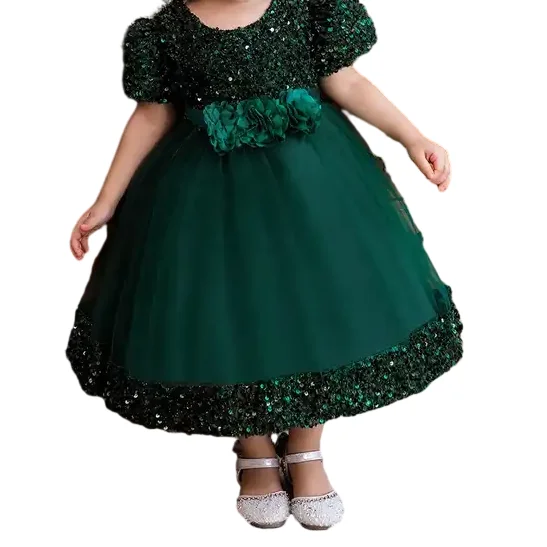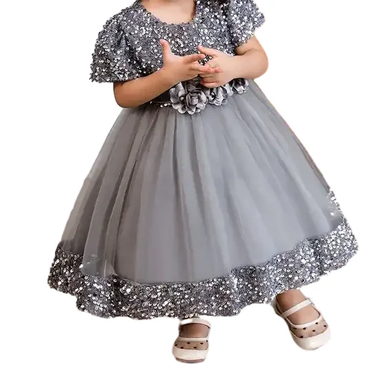 European Fashion Party Dress Sequin Puffy Kid Dresses for Girls of 10 Year Old Flower Girl Dress for Wedding