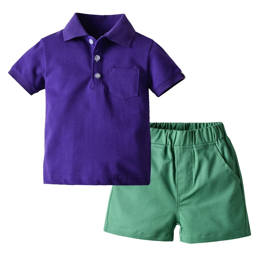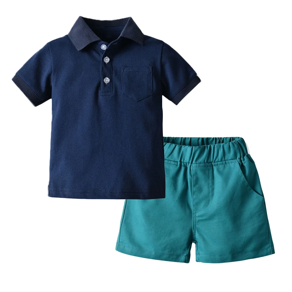 Customized Logo Summer Polo Kids Clothing Set Lapel Casual Boys Polo Shirts Shorts Clothing Set