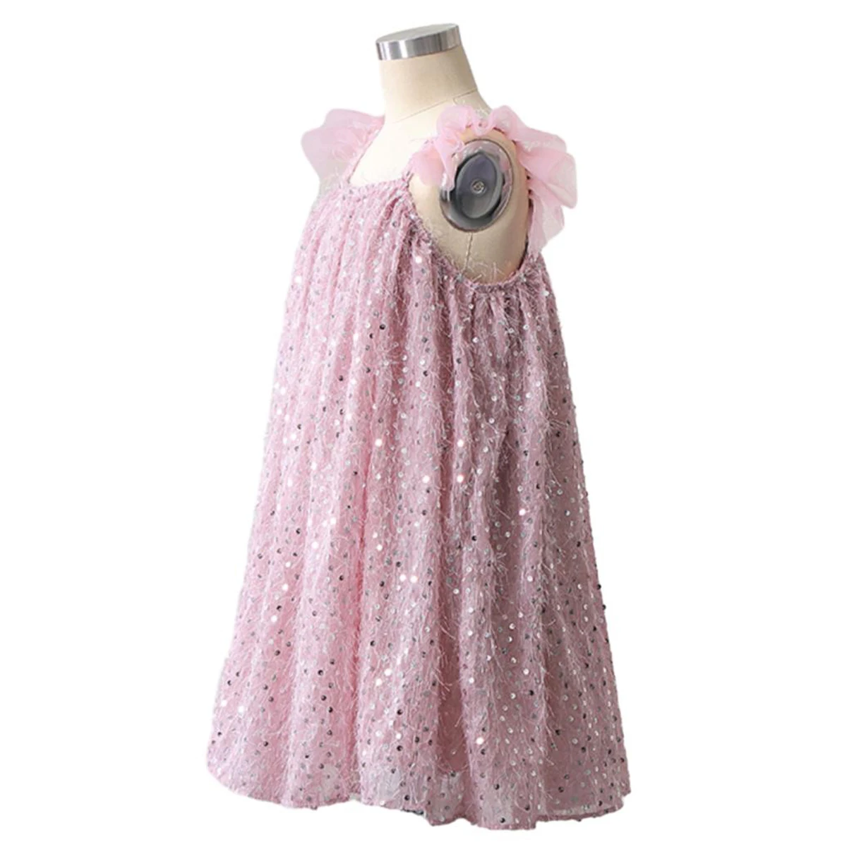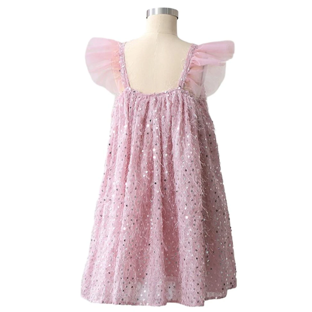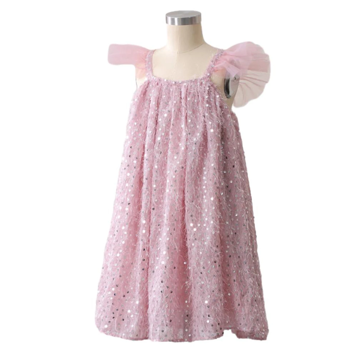 Wholesale Customizable Pink Ruffle Sleeve Girls Sequin Dresses Girls Tulle Dress for Summer