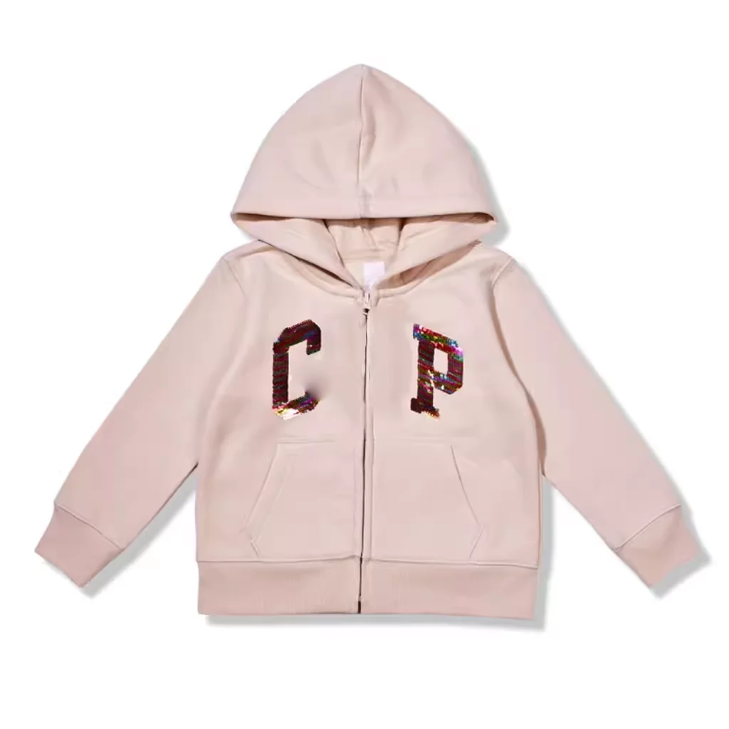 Custom Designs Kids Solid Color Hoodie Jacket Sequin Print Casual Jacket for Fall Winter