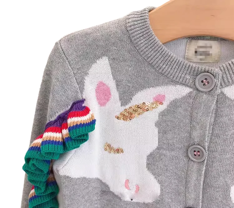 Hot Sale Customization Garment Unicorn Print Baggy Kids Knitted Girl Sweaters for 2-14T Kids