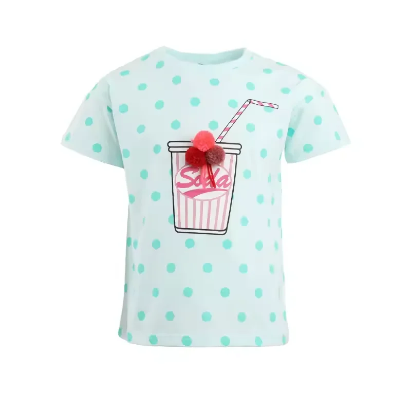 Hot Sale Customized Kids Breathable 100% Cotton T Shirt Dot Tops Girls T Shirt