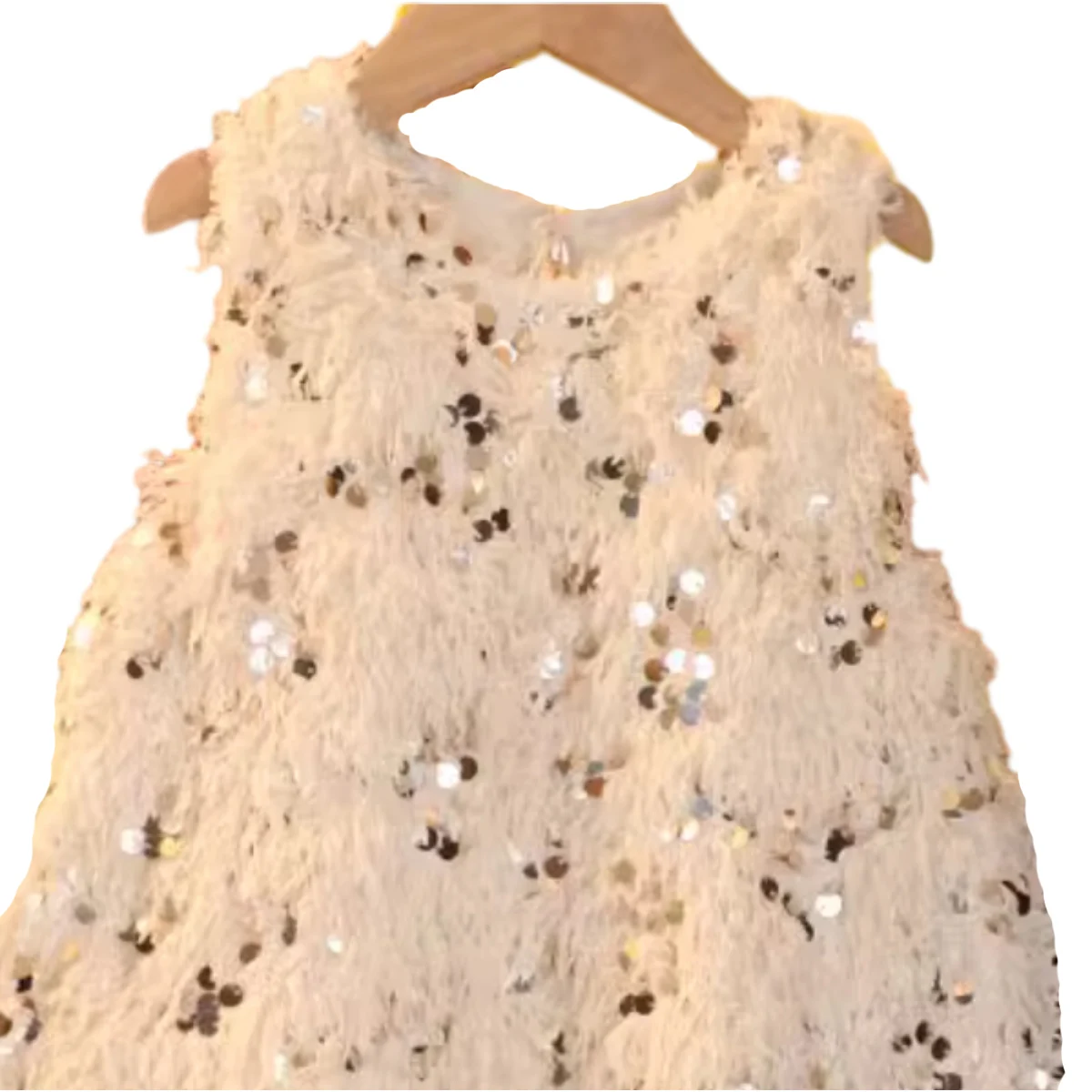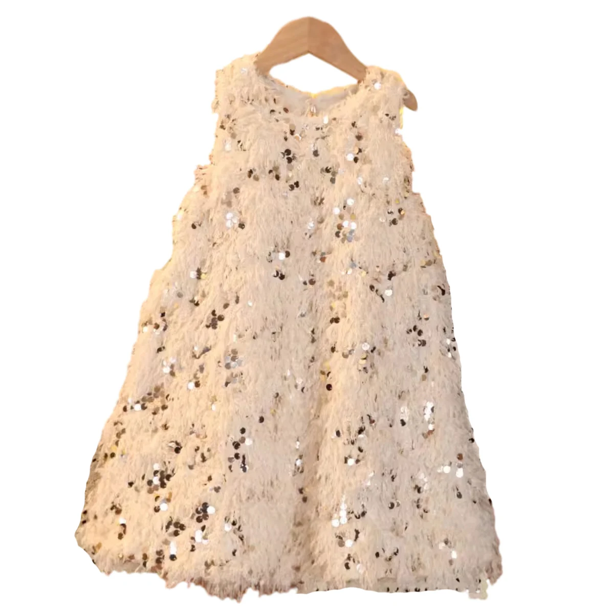 Customizable Girls Autumn Winter Dress Children's Velvet Sequin Girl Sleeveless Princess Dress