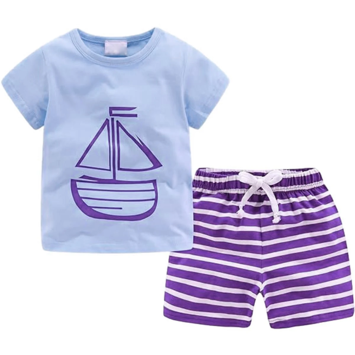 Custom Summer Children Short Sleeve Shorts Clothing Boys Set Toddler Holiday Clothing Outfit
