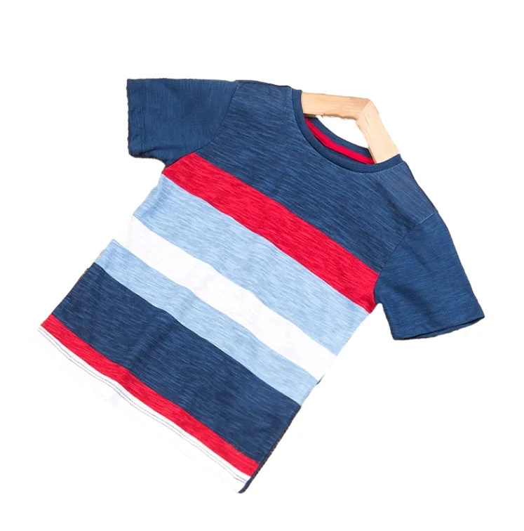 Customizable Summer New Design Striped Boys T-shirts Short Sleeve O-neck Casual Kids T-shirts