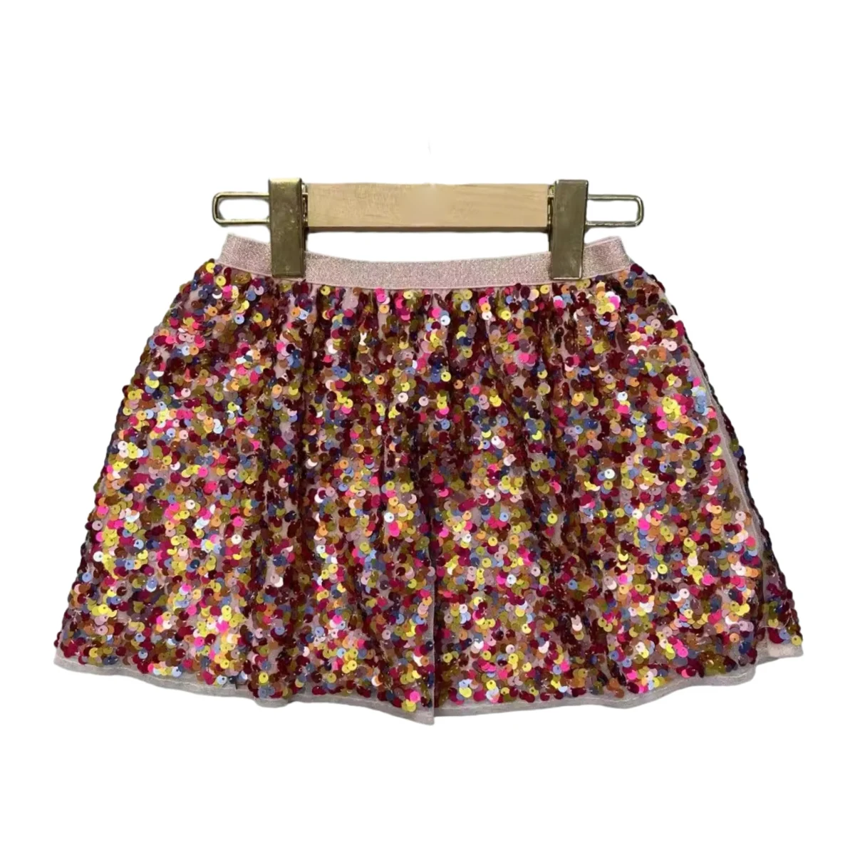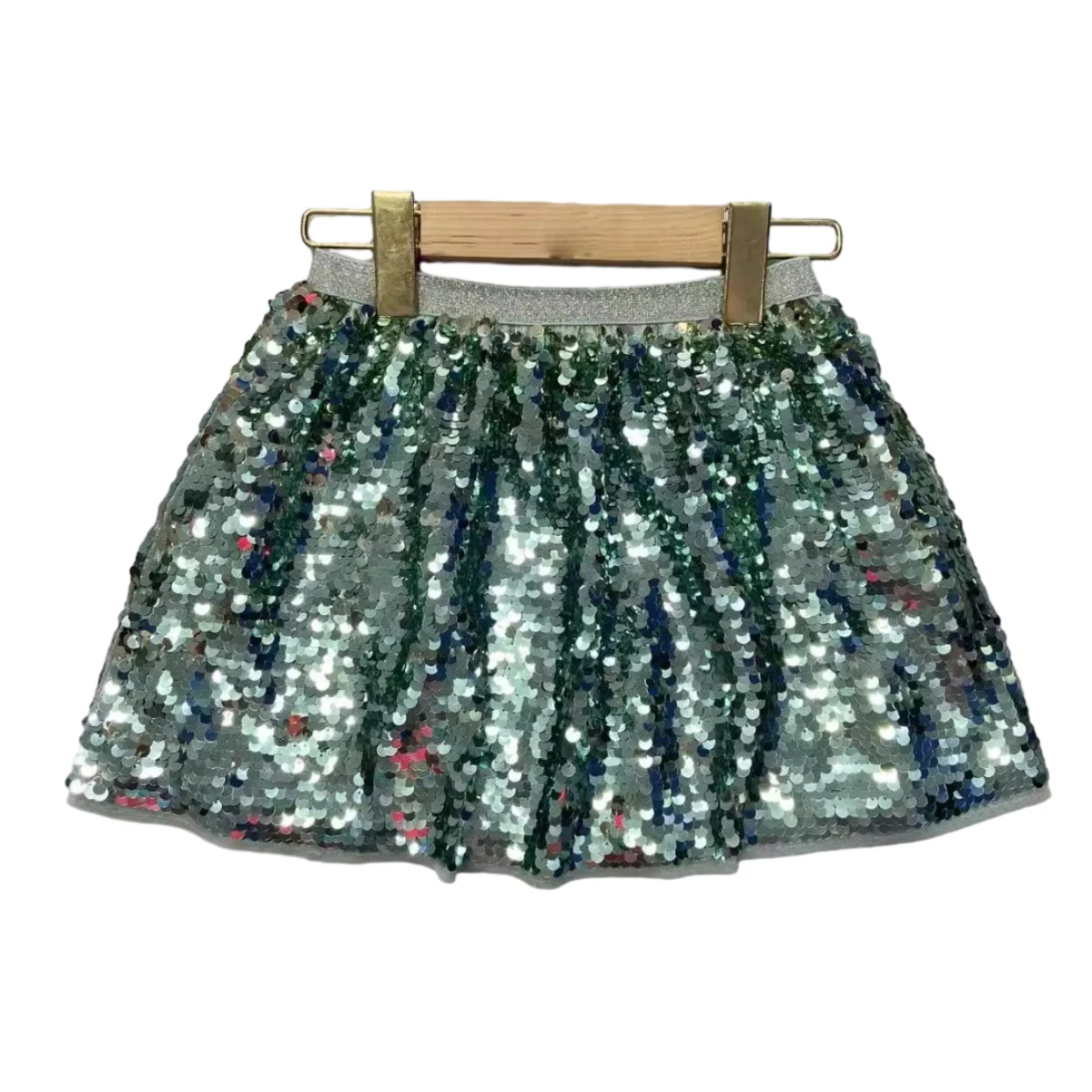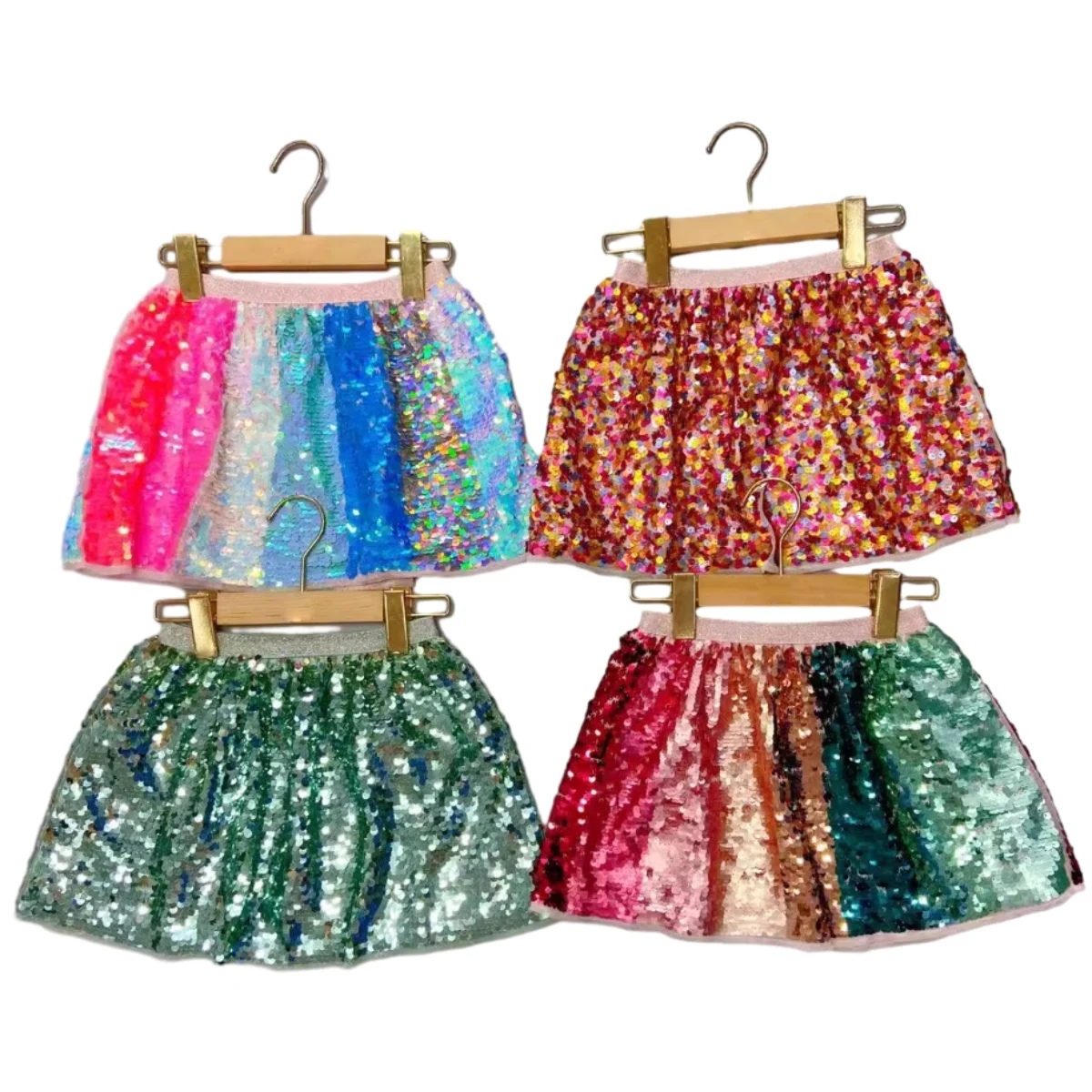 Customize Colorful Sequin Fabric Color Block Soft Girls Skirt Kids Sequin Skirts