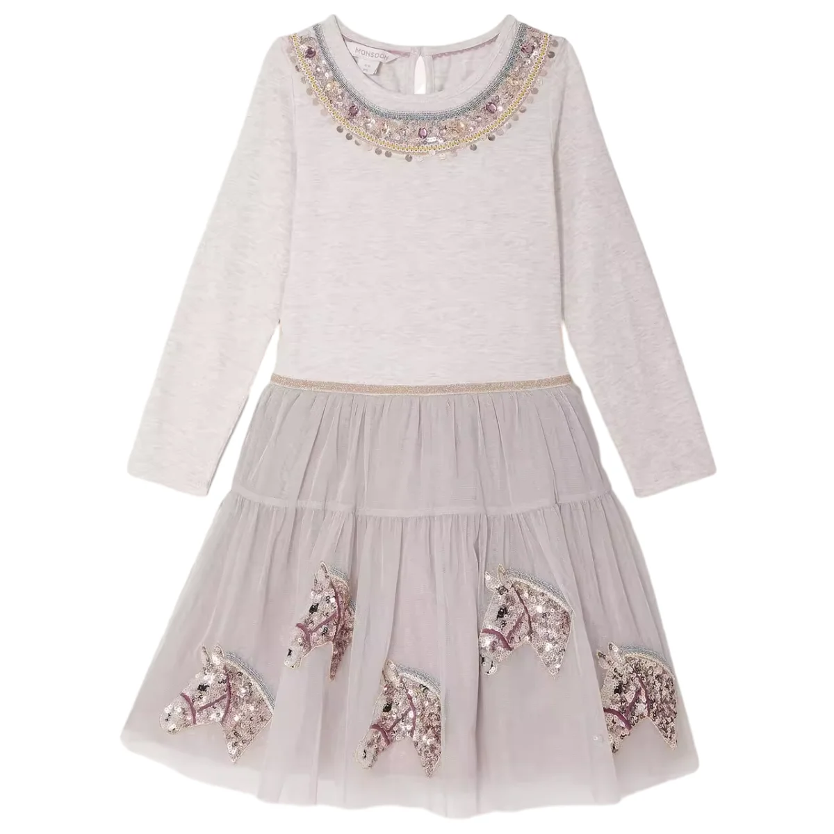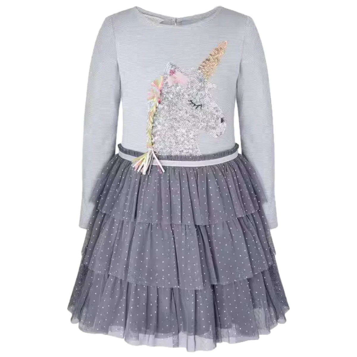 Customizable Summer New Arrival Glitter Tulle Sequined Unicorn Girls Dress Long Sleeve Princess Dresses