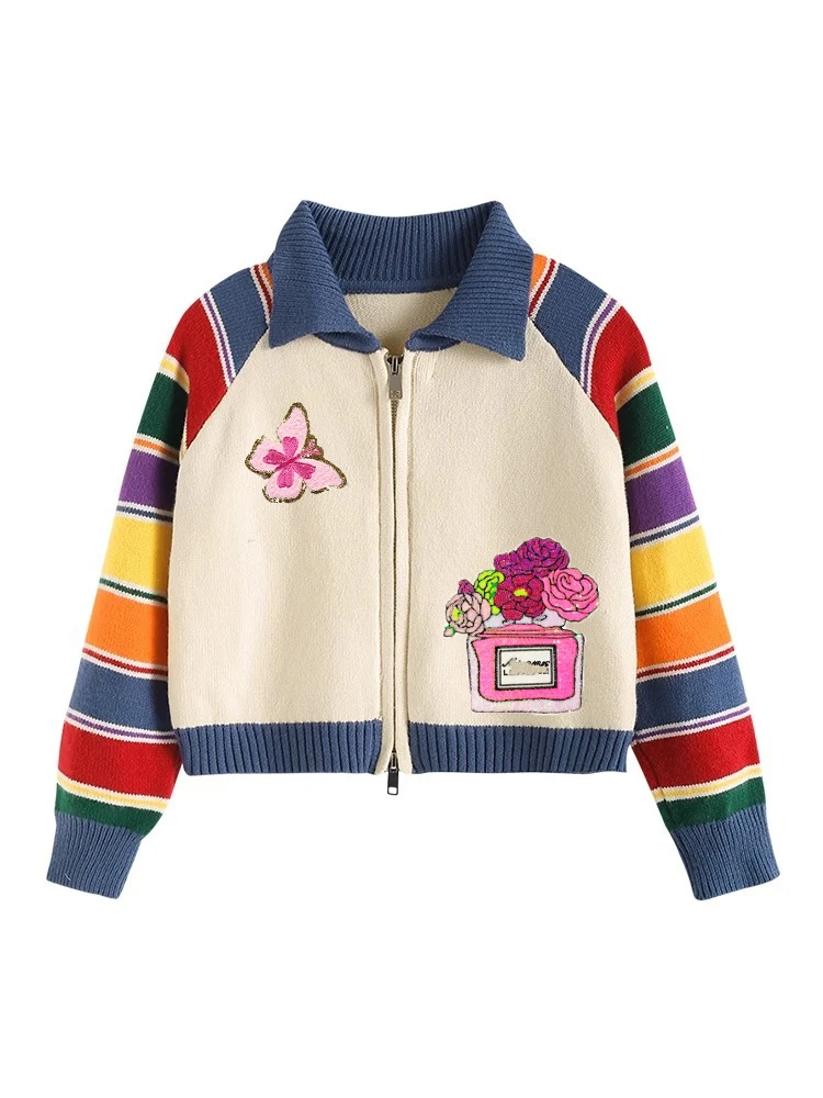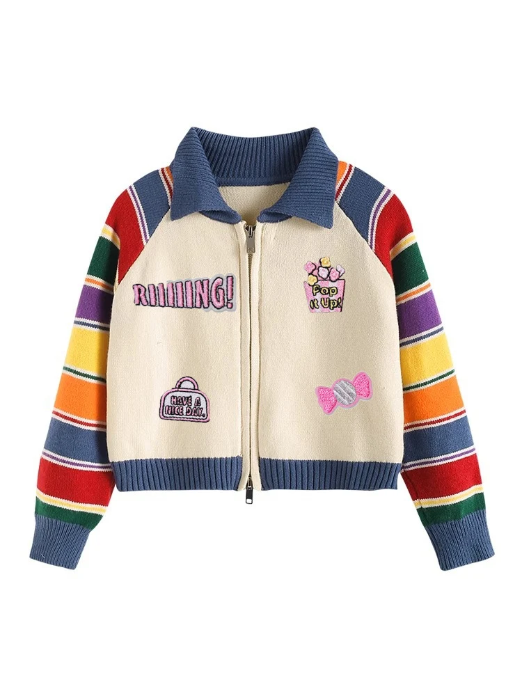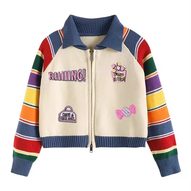 Customizable New Product Explosion Colorful Sleeve Zipper Sweater for Teenage Girls Kids Sweaters