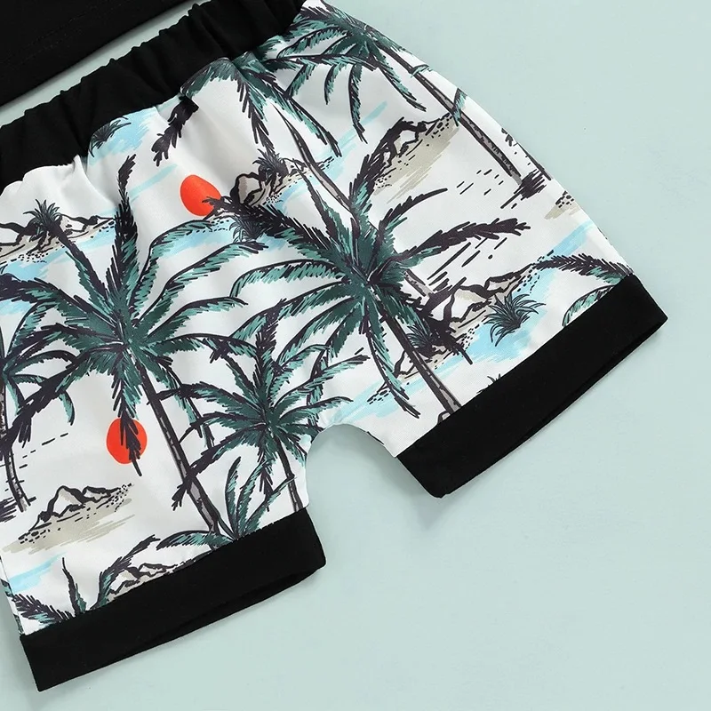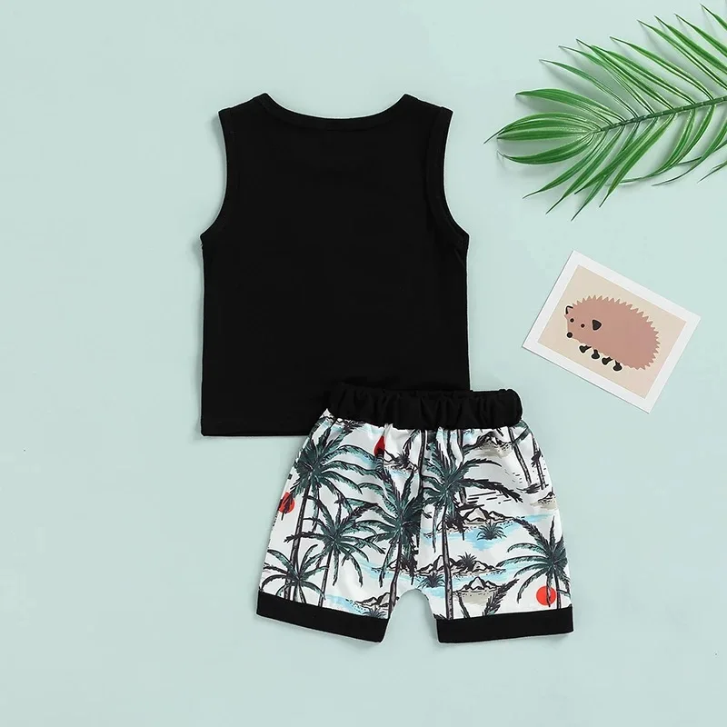 Customizable Summer Boys Clothing Sets Beach Vest Coconut Tree Shorts Casual Two Pieces Kids Clothing Sets
