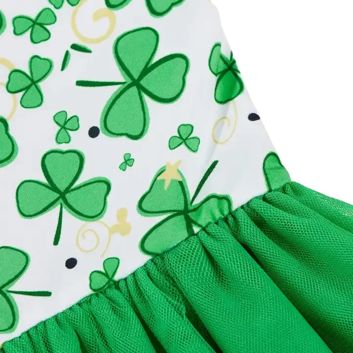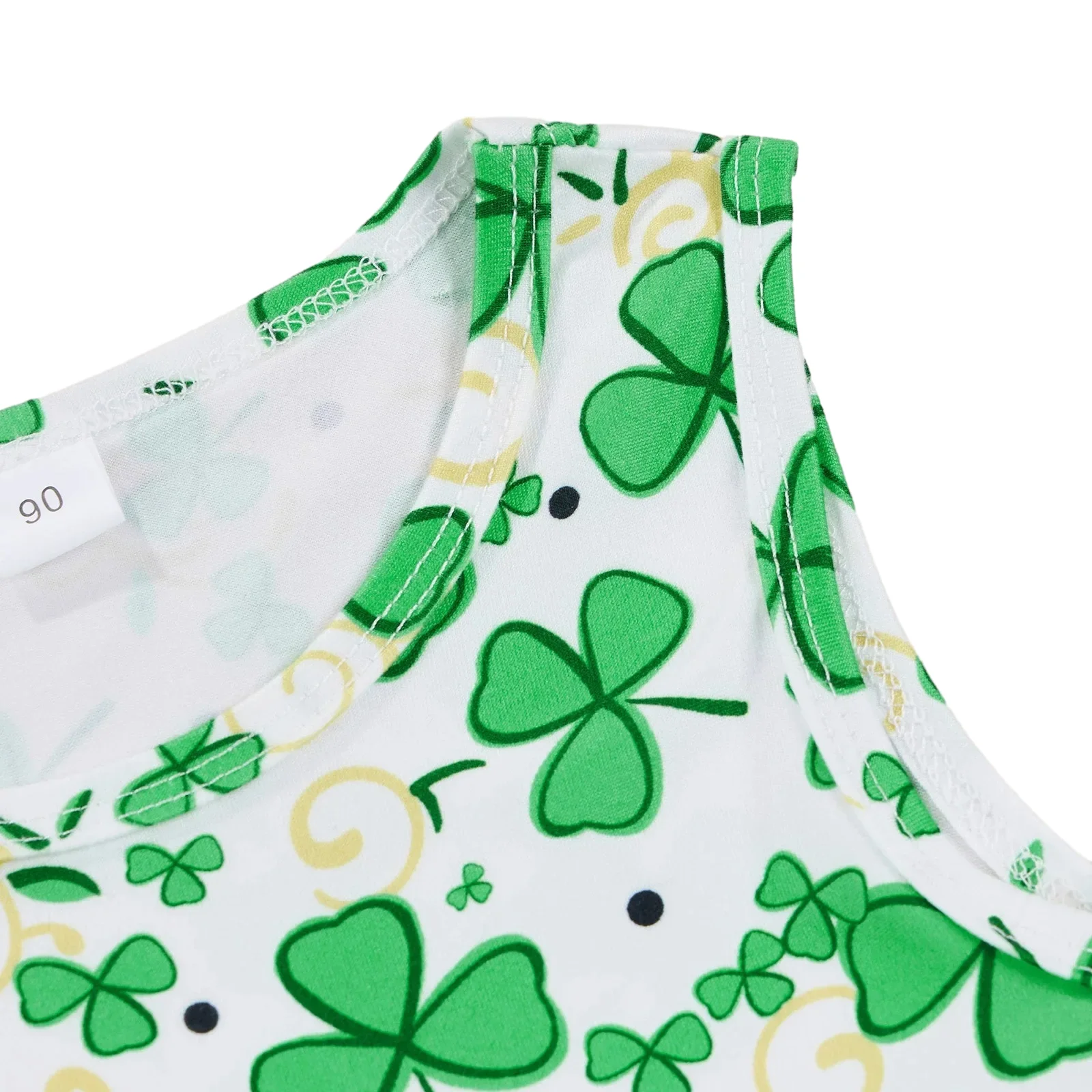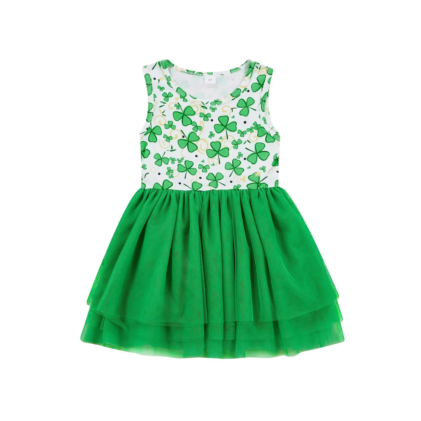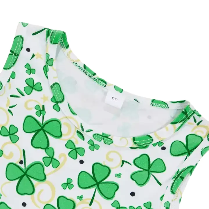 Customizable Summer New Style Patrick's Day Clover Printed Girls Dresses Casual Sleeveless Tutu Skirt Princess Dresses