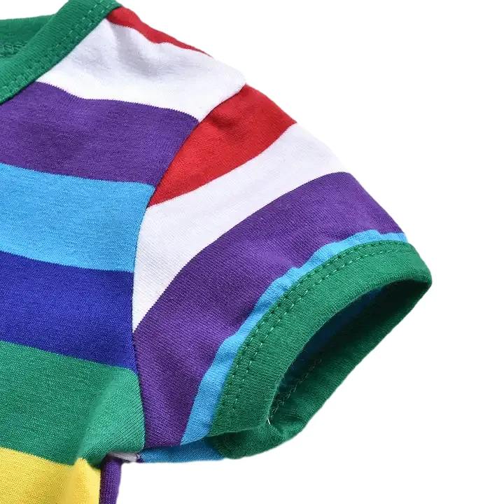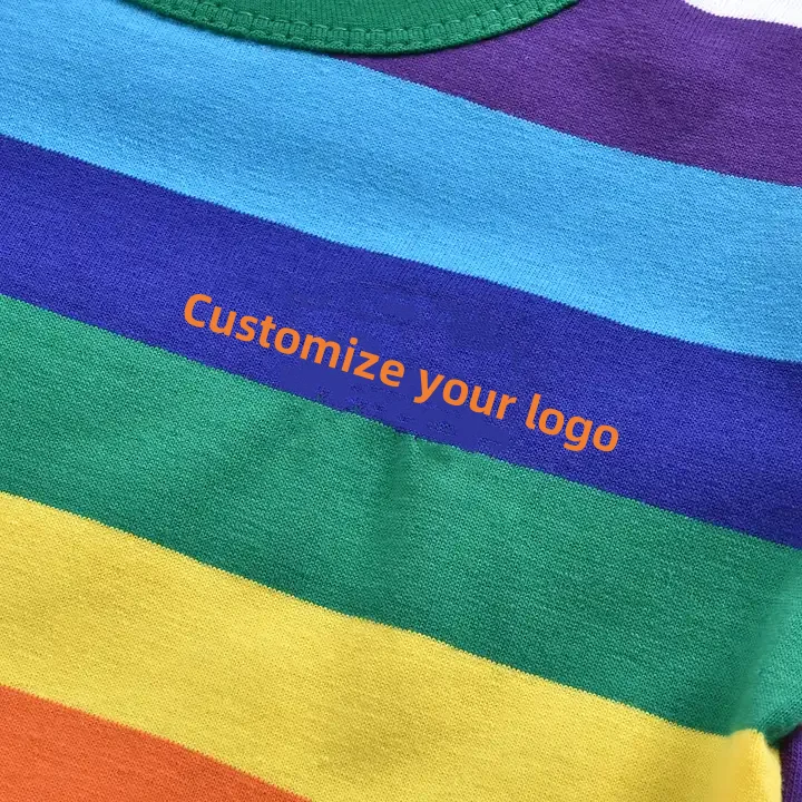 Summer Customizable 100% Cotton T Shirt Children Rainbow Color Shirt With Patchwork Short Sleeve Boys T-Shirts