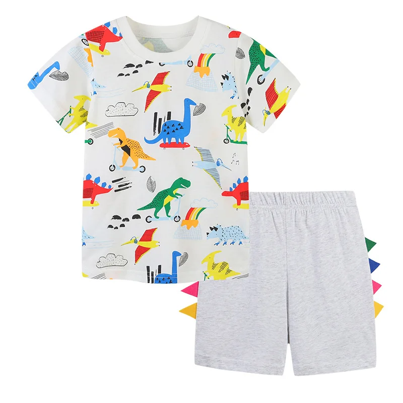 Customizable Summer Cotton Two Piece Sets With Cartoon Printing Boys Clothing Sets