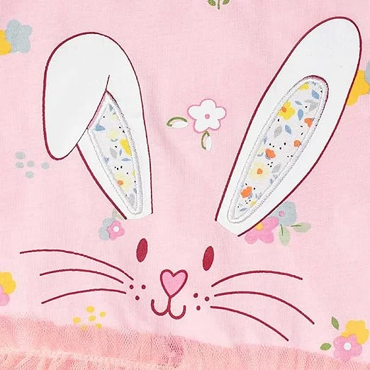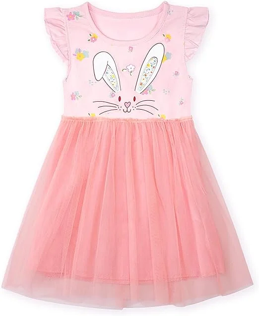 Customizable Explosion Cute Rabbit Printing Frock Design Girls Dresses 2-14 Children Clothing