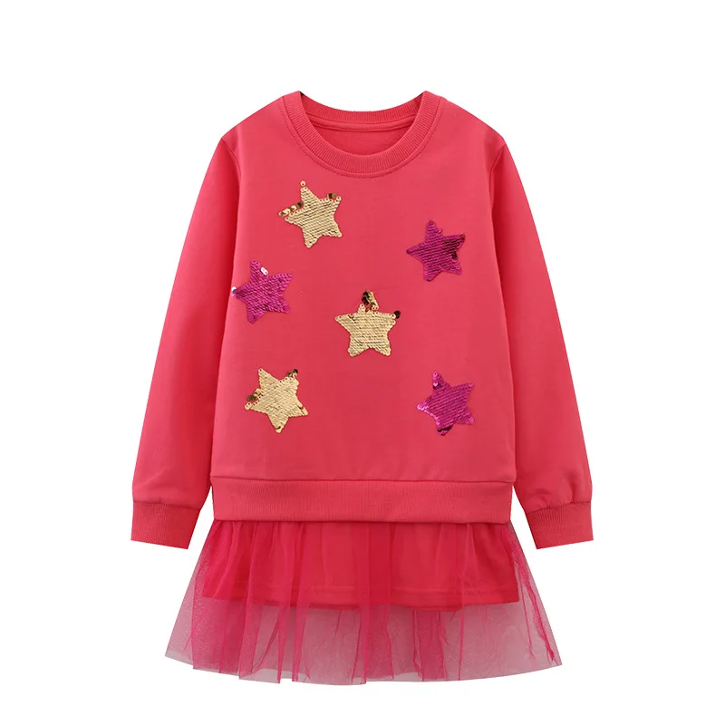 Hot Sell Long Sleeve Sweatshirt Sequin Tulle Dress a Line Girl Princess Dress for Spring Autumn Season