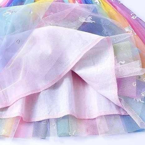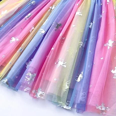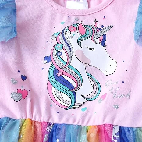 Customizable New Product Explosion Flying Sleeve unicorn Printing Girls Dresses 2-14 Children Clothing