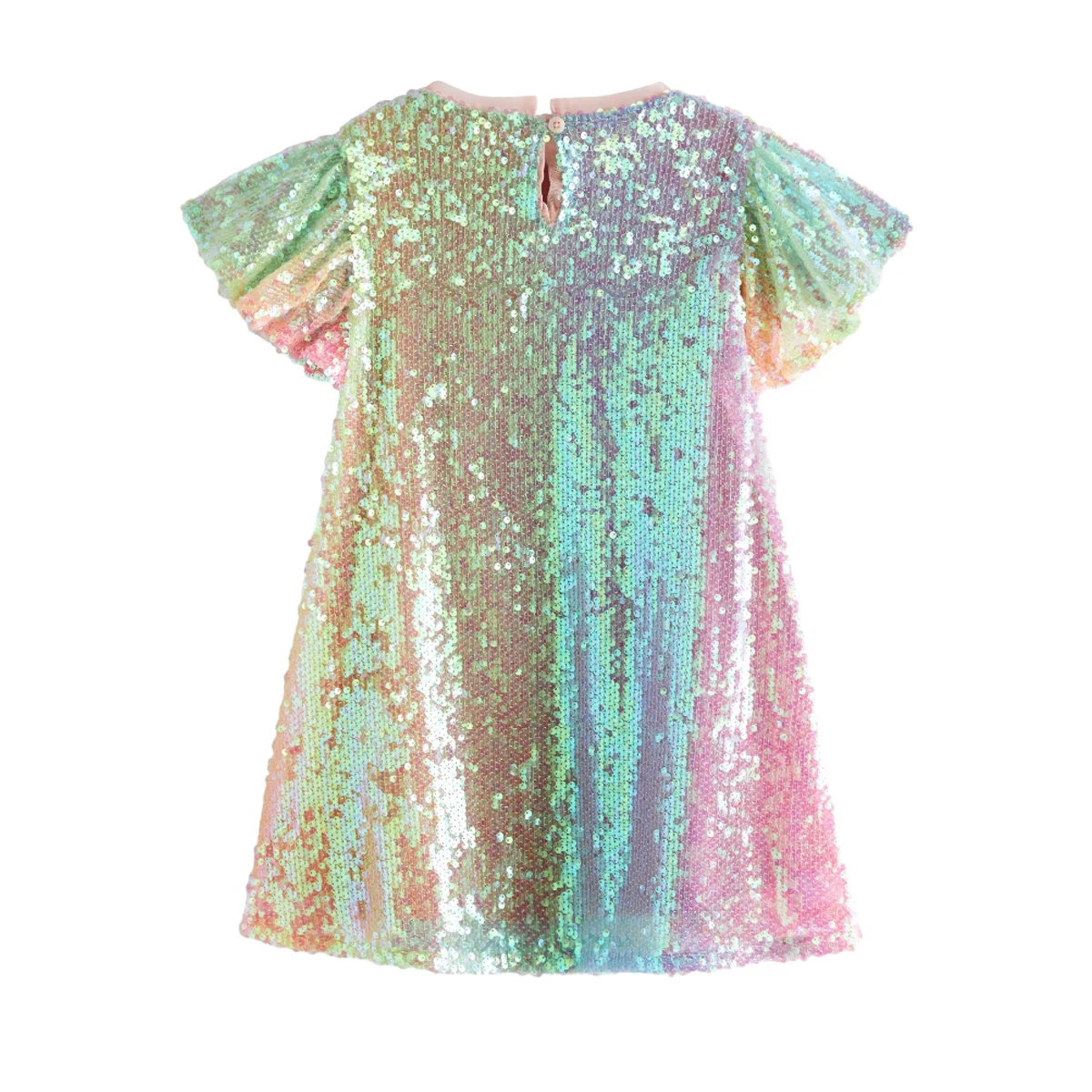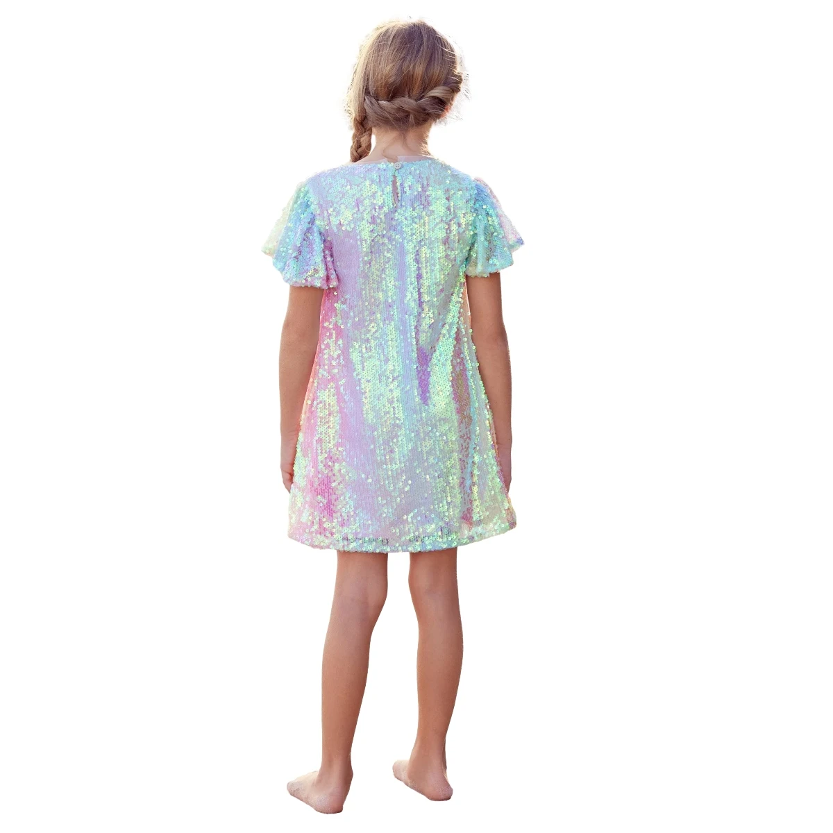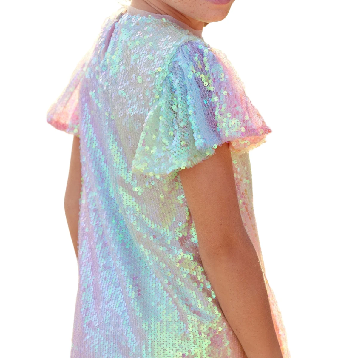 Custom Colors Gradient Colors Ruffle Sleeves Sequins Girls Summer Dress for 2 to 14 Years