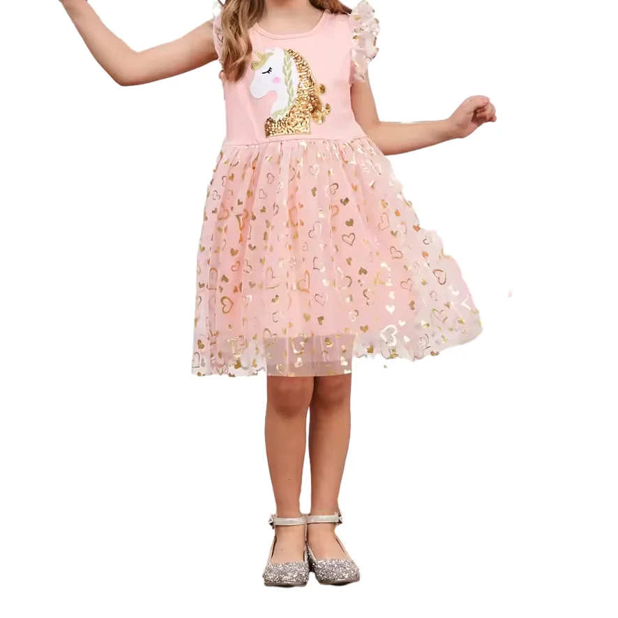 OEM ODM Customizable Girls Unicorn Summer New Sleeveless Embroidered Glitters Tulle Dresses