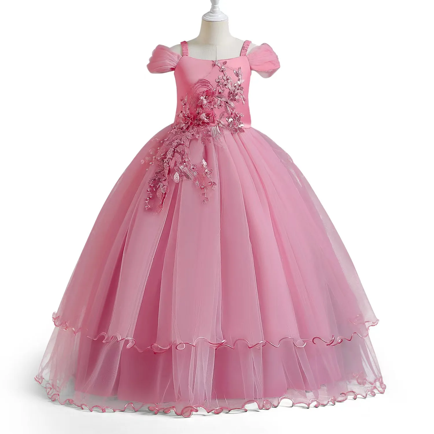 Customizable New Style Ball Gown Spaghetti Strap Embroidery Puff Sleeves Layers Tulle Dress