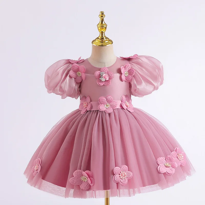 OEM Customizable Factory Puff Sleeve Princess Party Dress With Patch Summer Wear Flower Girls' Dresses