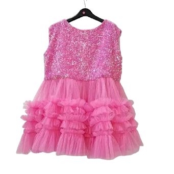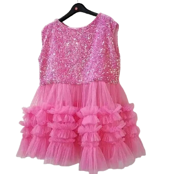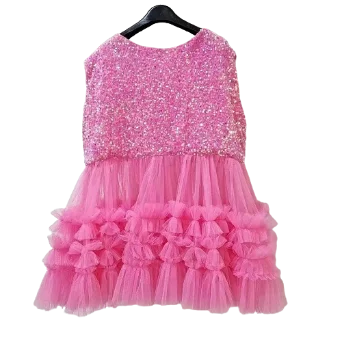 Customizable New Product Explosion Sleeveless Sparkle Sequin Tulle Dress Latest Children Dress Designs