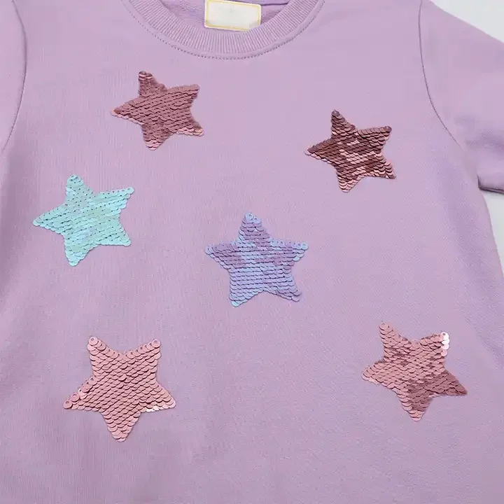 Customizable Summer Pullover T Shirt Sequin Stars Pattern Lined Dress Cotton T-Shirt Girls Dress for Casual