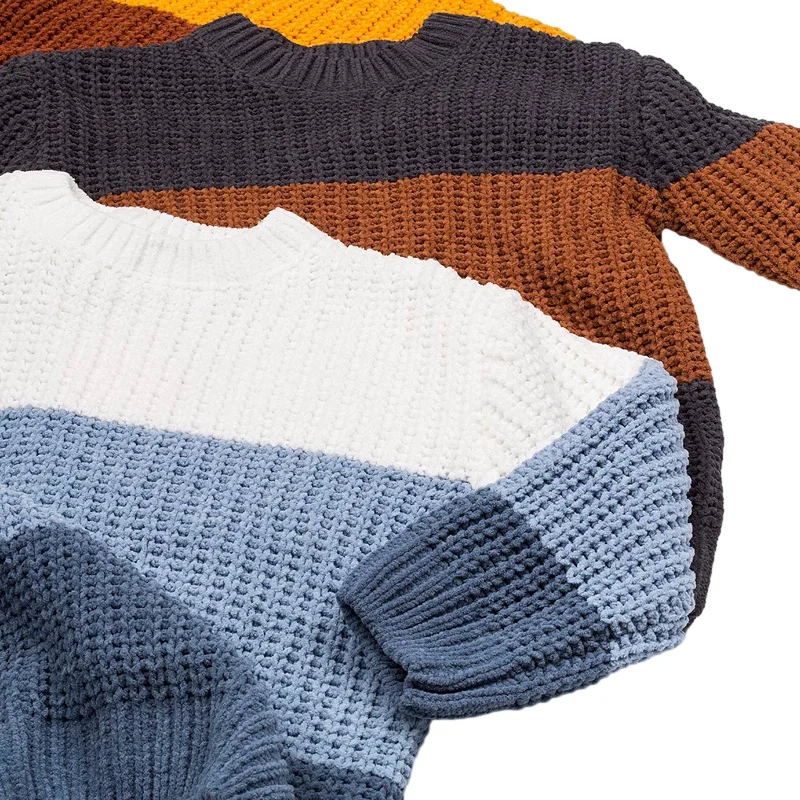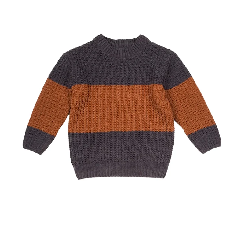 Customizable Winter New Design Blocked Color Thickened Boys Sweaters Long Sleeve O-neck Casual Children Sweaters