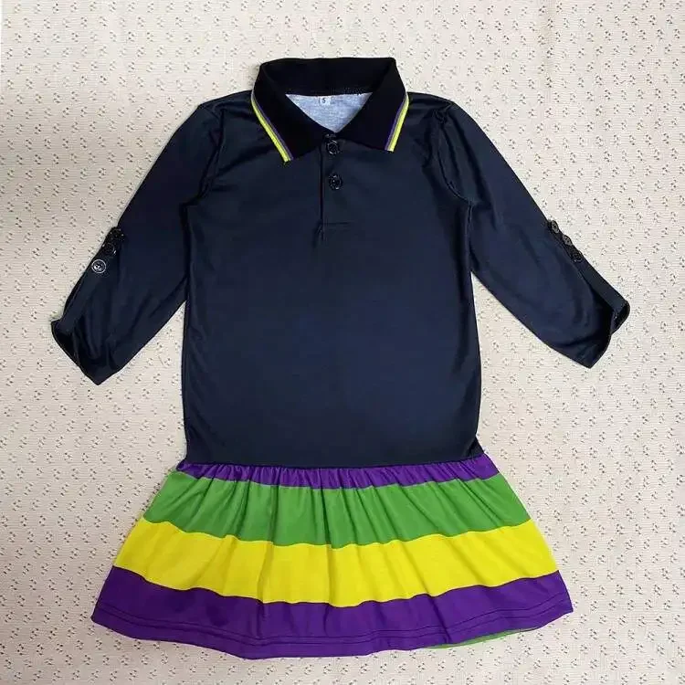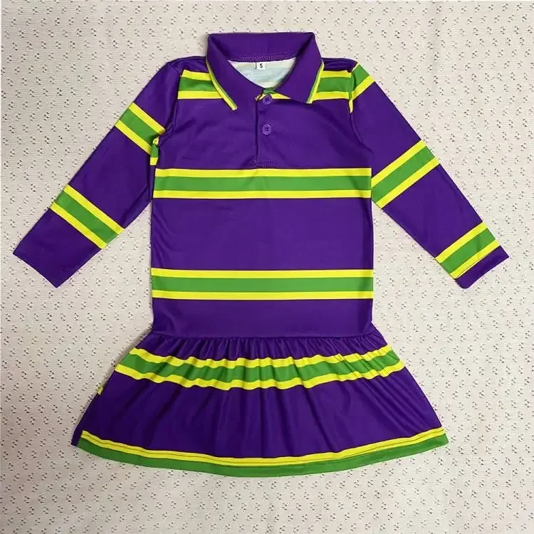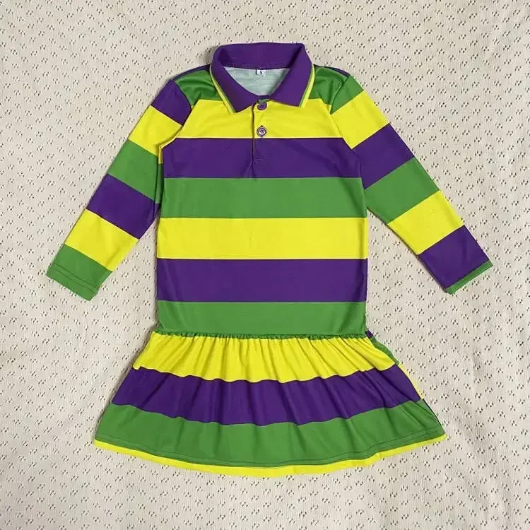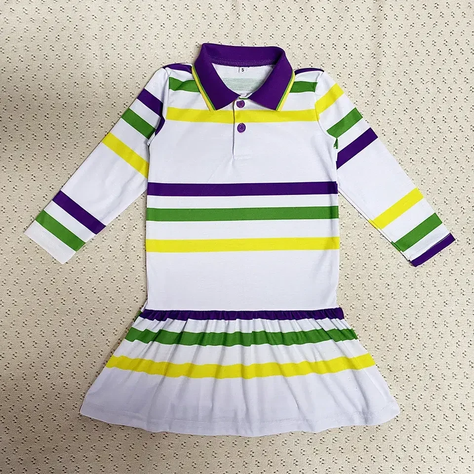 OEM Customizable Service Custom Long Sleeve Mardi Gras Girls Dress Fashion Spring Stripes Kids Clothing