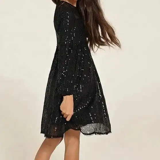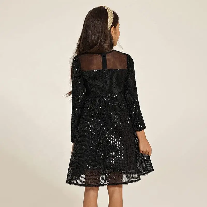 OEM Customized Casual Breathable Long Sleeve Princess Kids O-Neck A-Line Knee-Length Girls Dresses