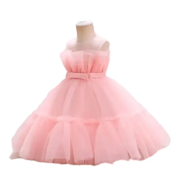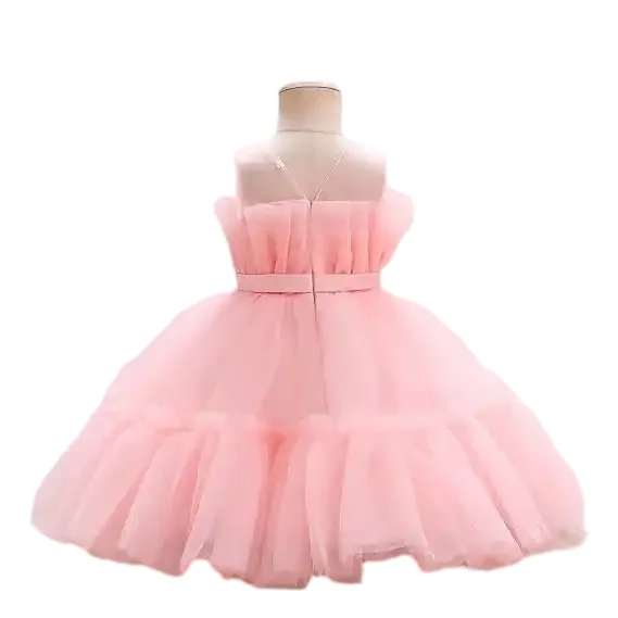 OEM Customizable Design Sleeveless Flower Girls Dresses Party Fashion Pink Evening Girls Dresses