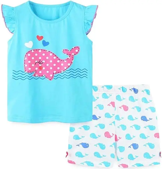 Customizable Girls Summer Outfit Cotton Top and Shorts Clothing Set for 2-14 Years