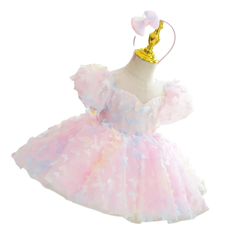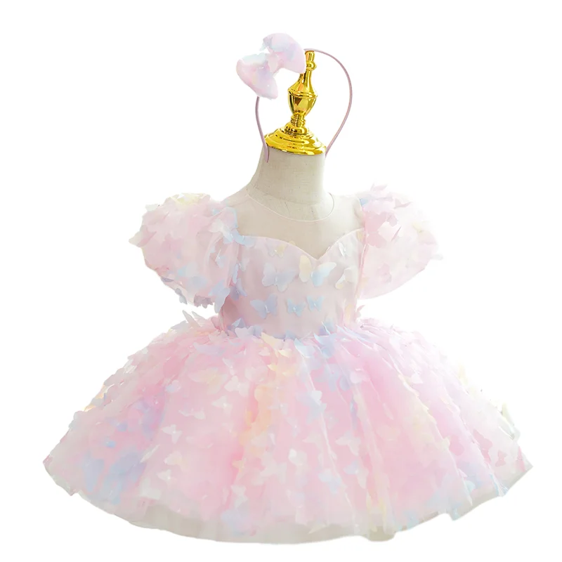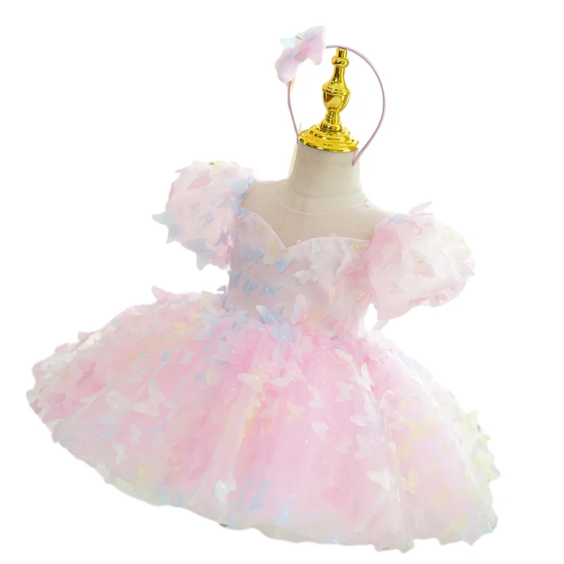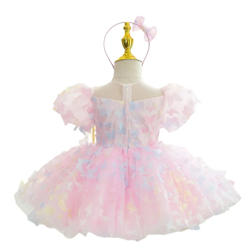 Customizable Summer Cute Luxury Flower Girls' Dresses Short Sleeve Puffy Tulle Dress Butterfly Sweet Ball Grown