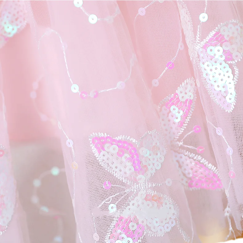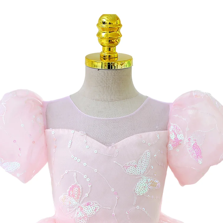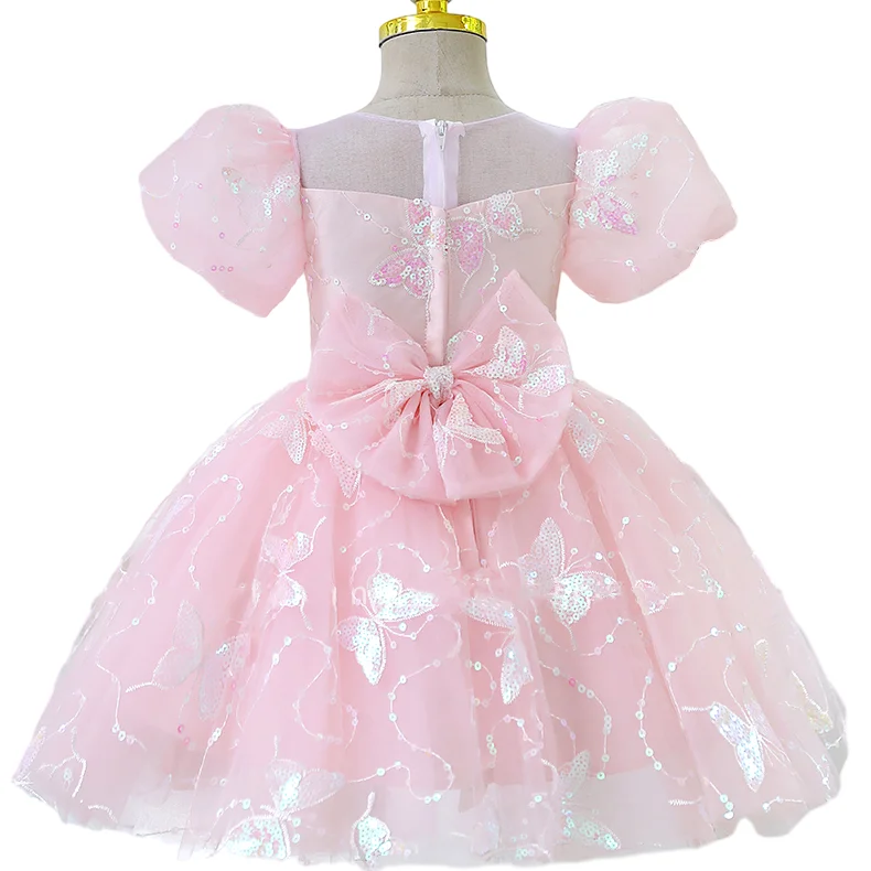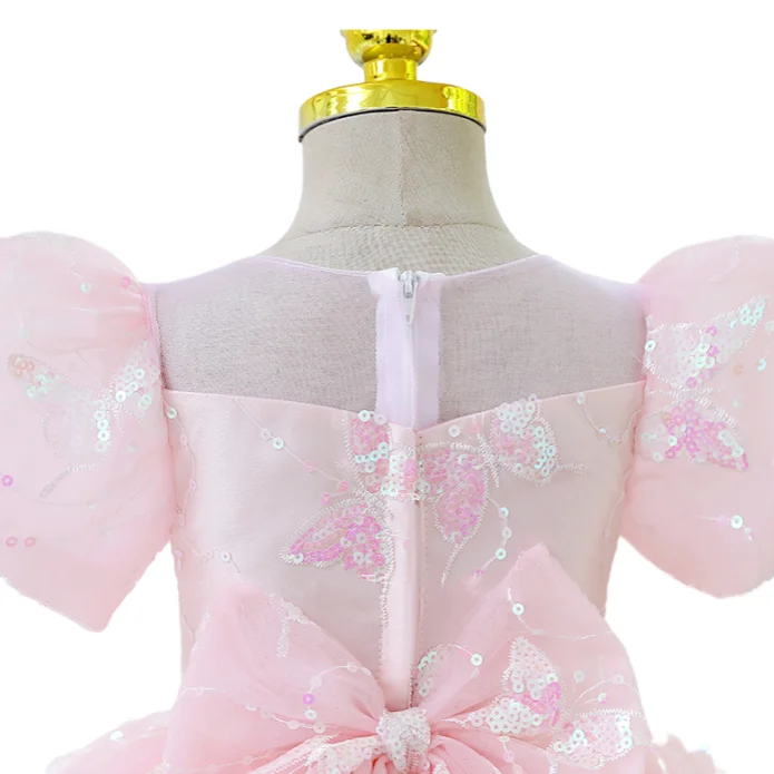 Customized Pink Birthday Girls Dresses Luxury Princess Dress Puffy Sleeve Sequined Butterfly Tulle Dress