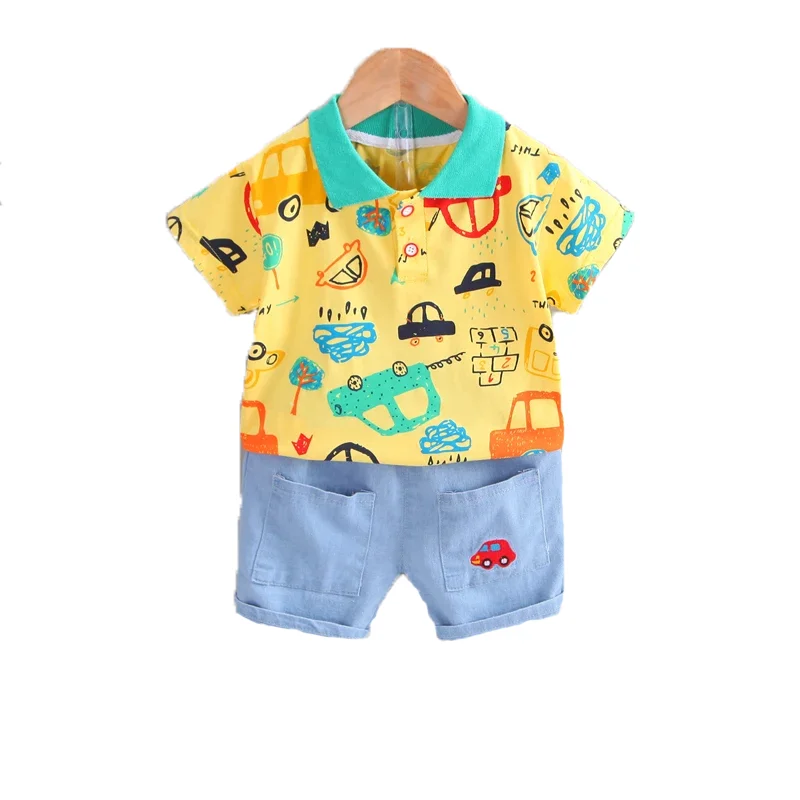 Fashion Design Children's Clothes Cotton Polo Shirt and Jeans Two Piece Set Custom Summer Boys Clothing Set