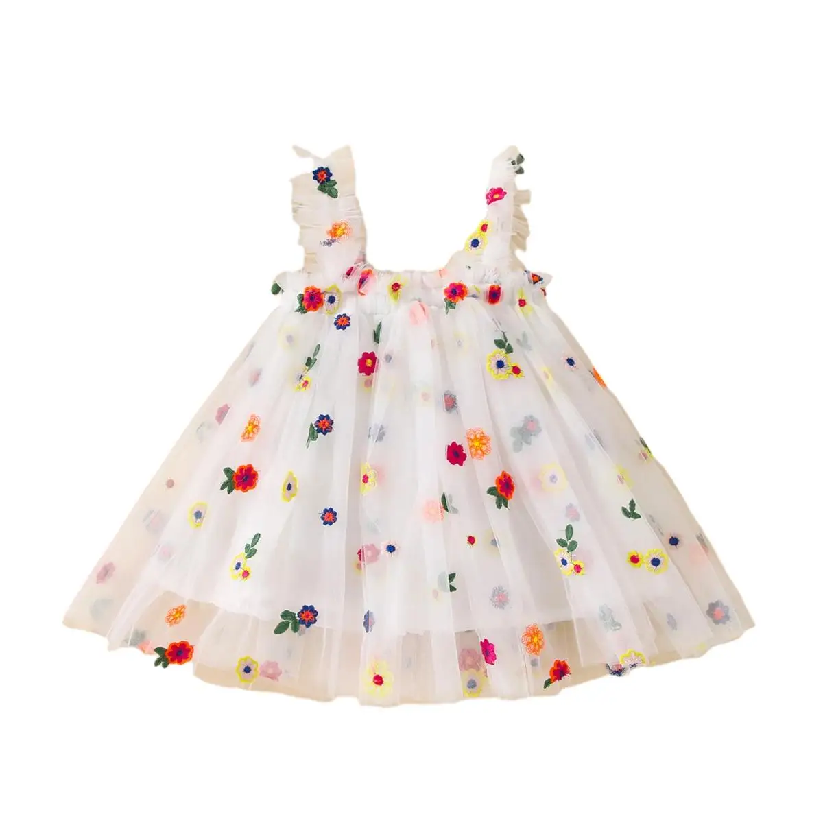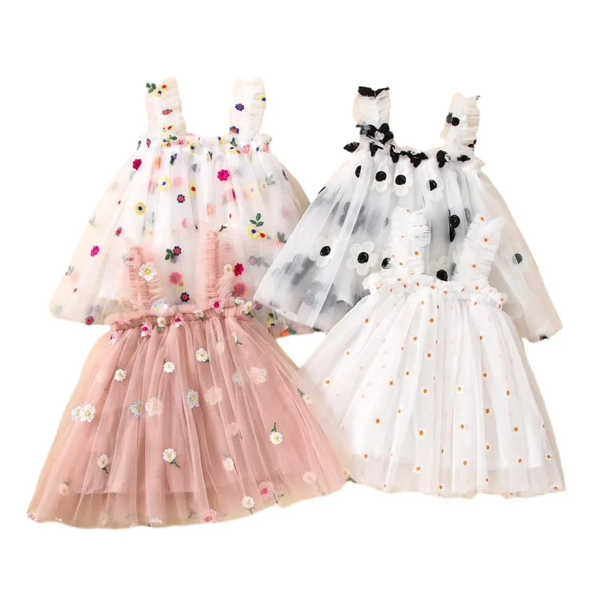 Hot Sale Fashion Girl Tulle Print Short Casual Dress Cute Toddler Girls Dresses in Summer